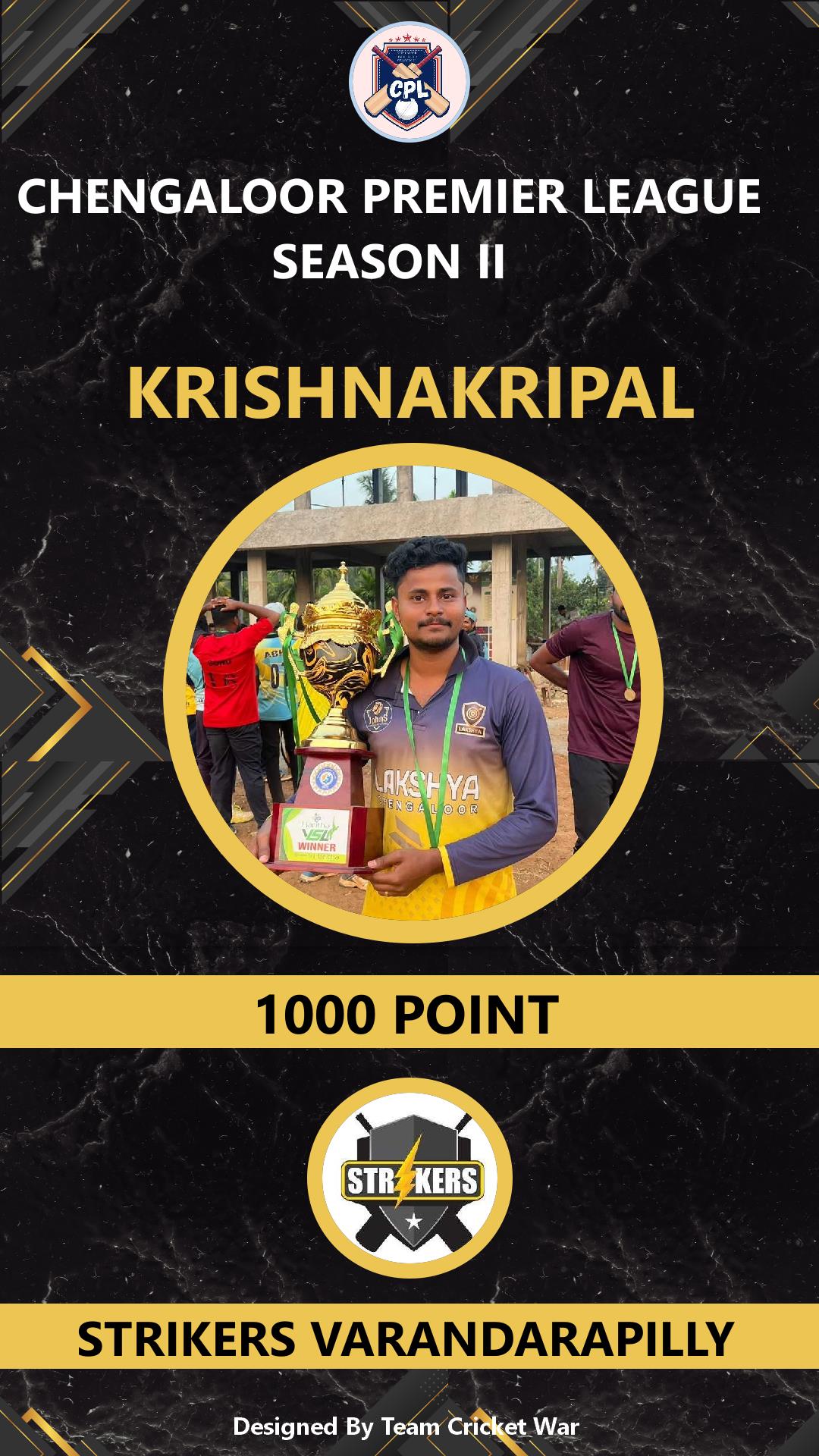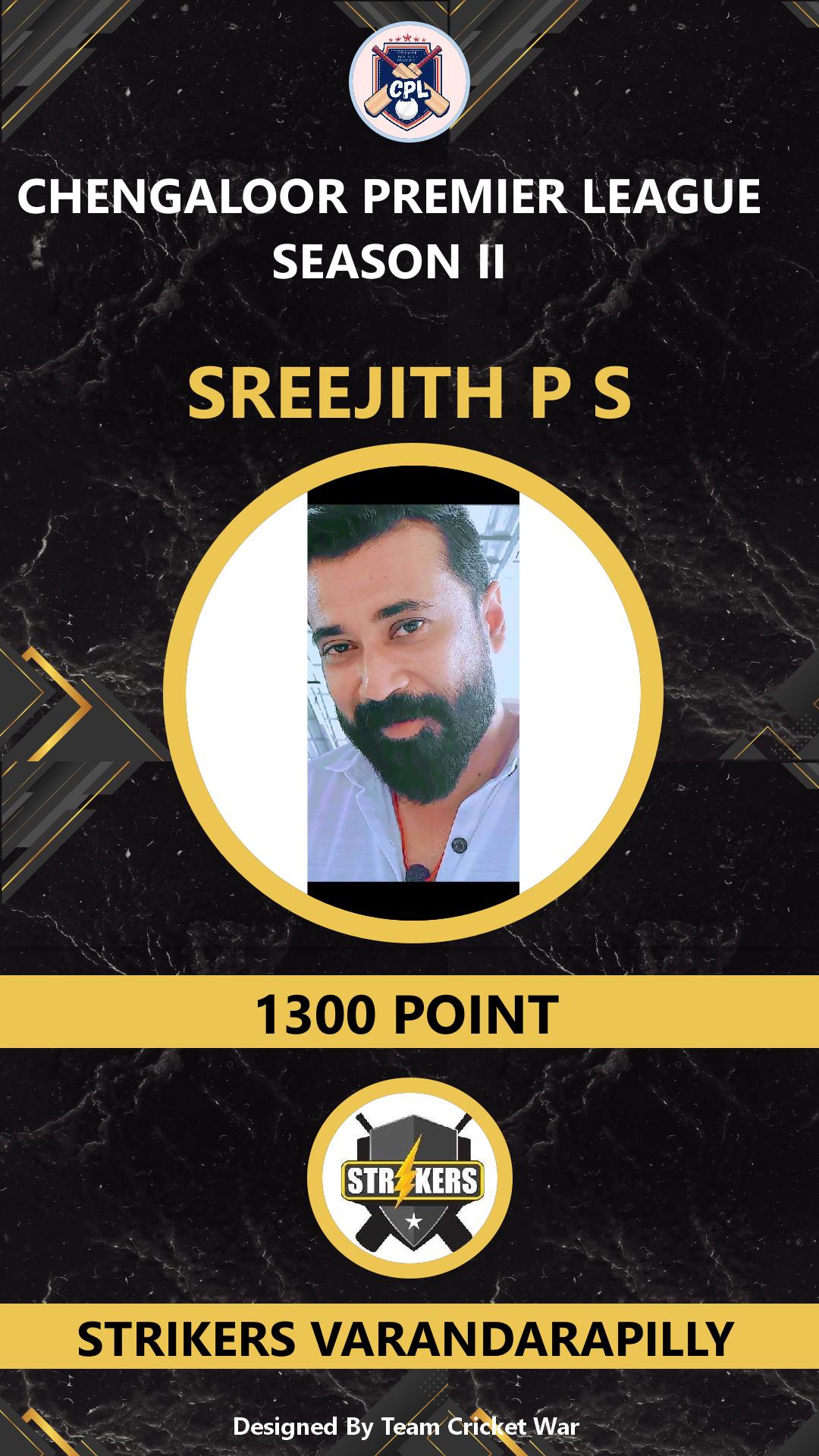 ALLROUNDER, AGE : 42 VARANTHARAPPILLY Bid Amount : 1000 Team : STRIKERS VARANDARAPILLY Download ID Card |