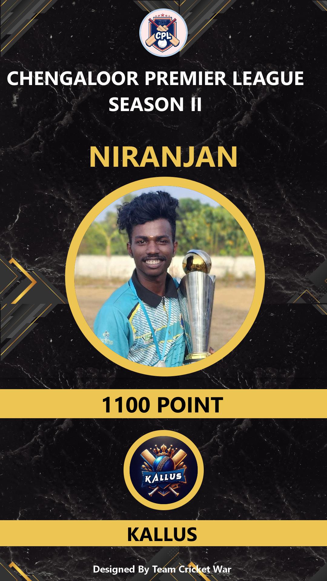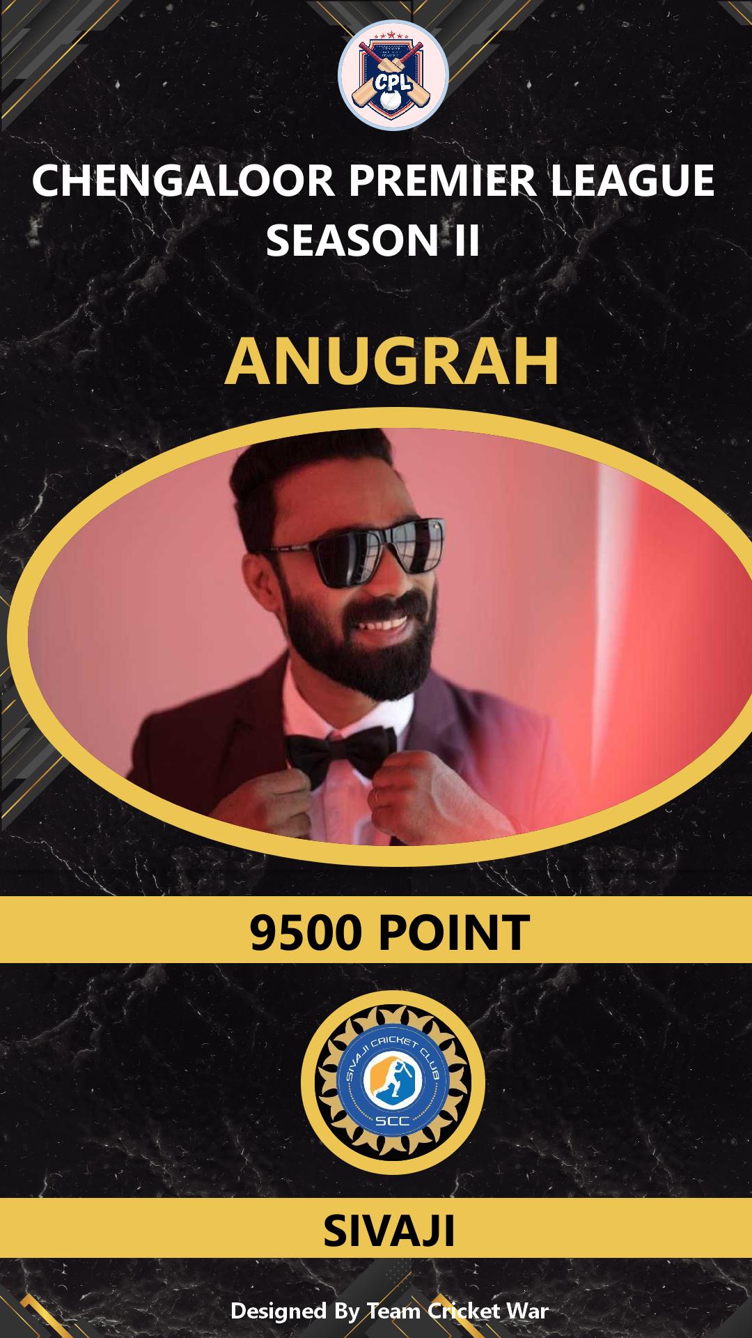 ALLROUNDER, AGE : 33 CHENGALOOR Bid Amount : 9500 Team : SIVAJI Download ID Card VIEW PROFILE |