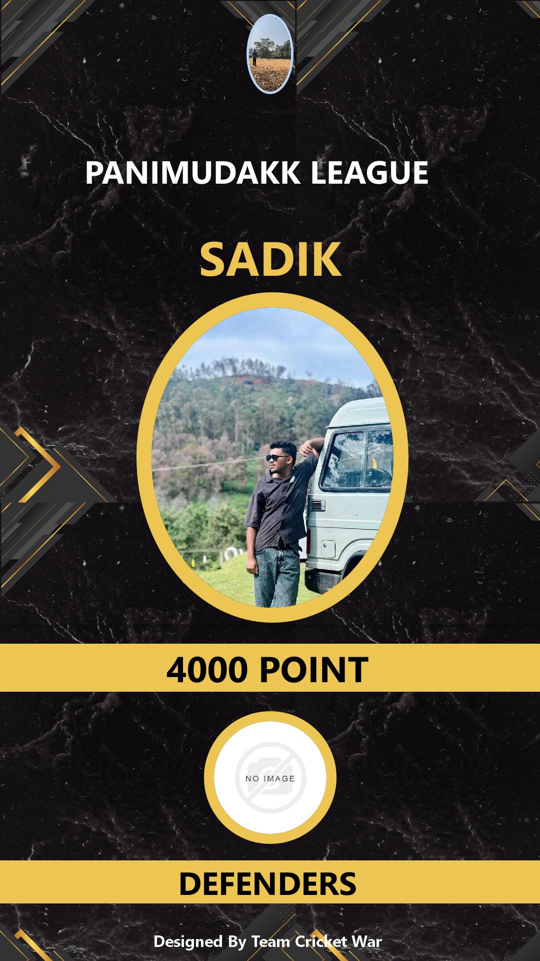 ALLROUNDER, AGE : 34 PANNIYADI Bid Amount : 1000 Team : SHADOWS Download ID Card VIEW PROFILE |