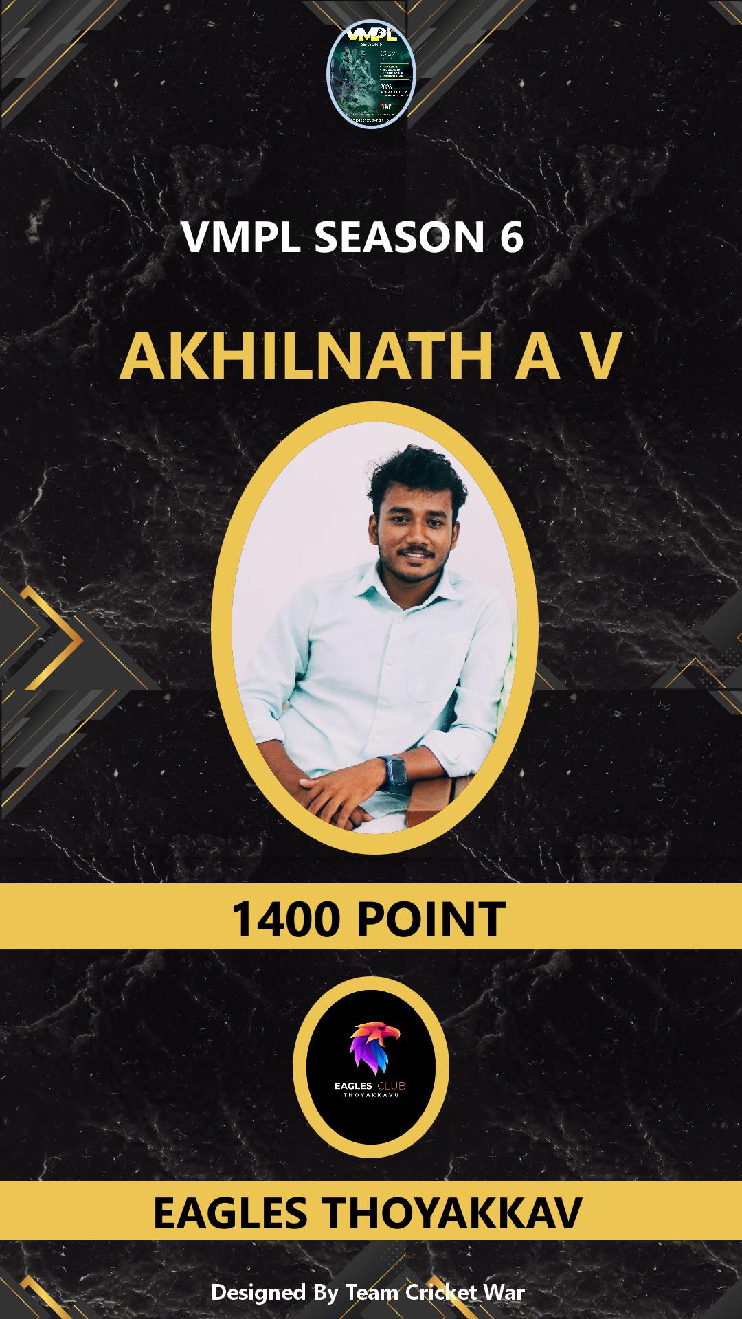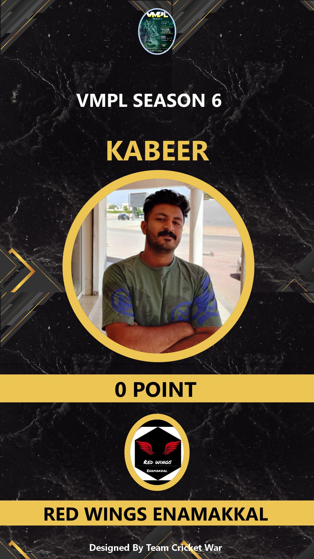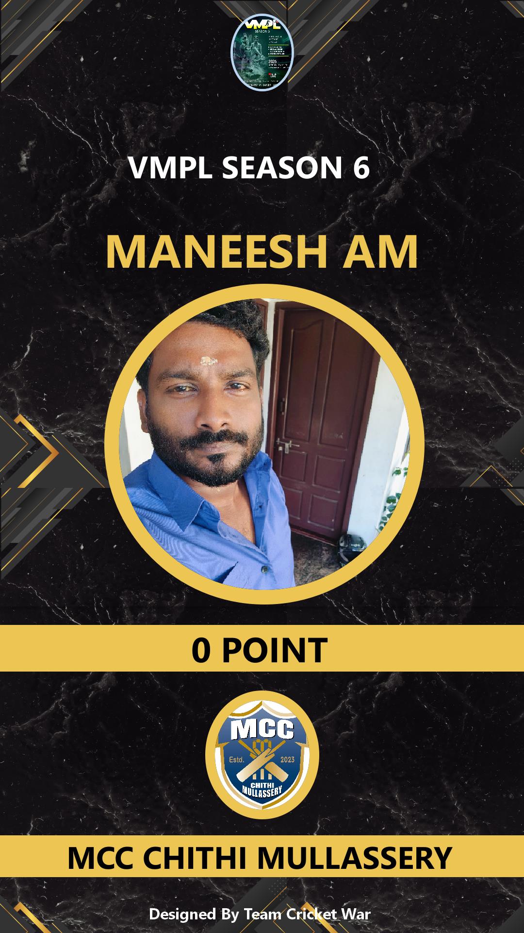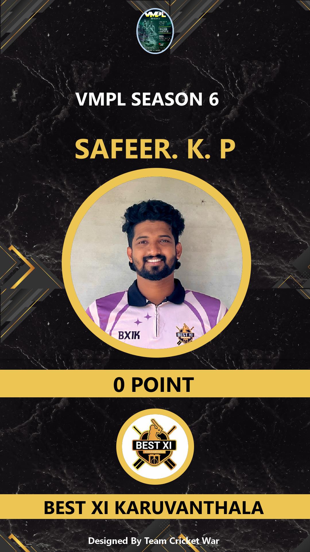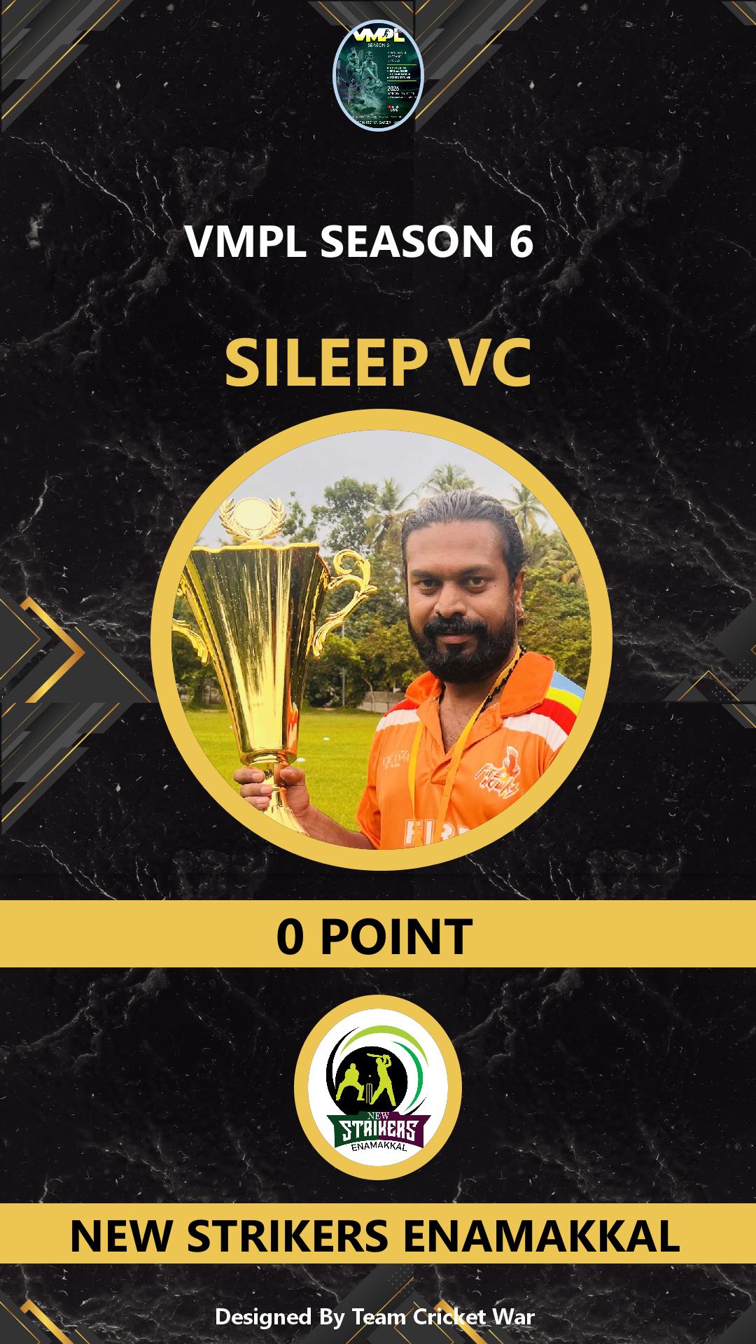 BOWLING ALLROUNDER, AGE : 29 MULLASSERY Bid Amount : 2400 Team : EAGLES THOYAKKAV Download ID Card VIEW PROFILE |