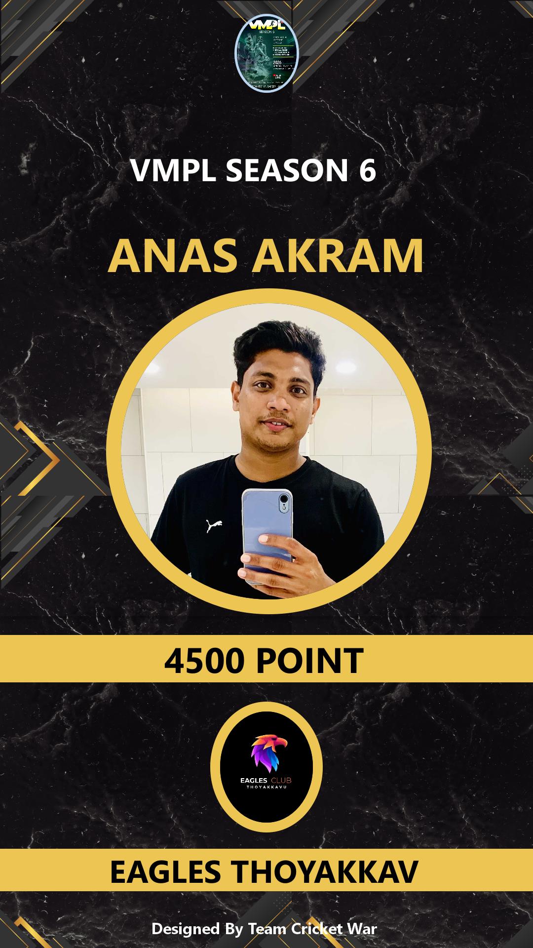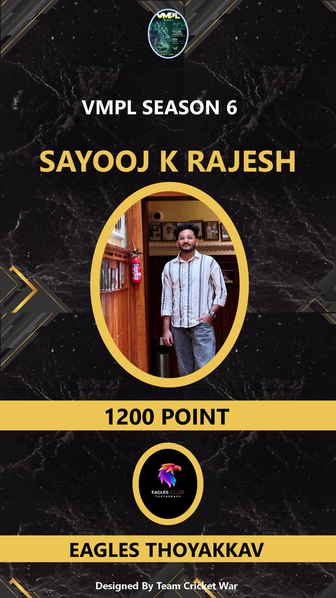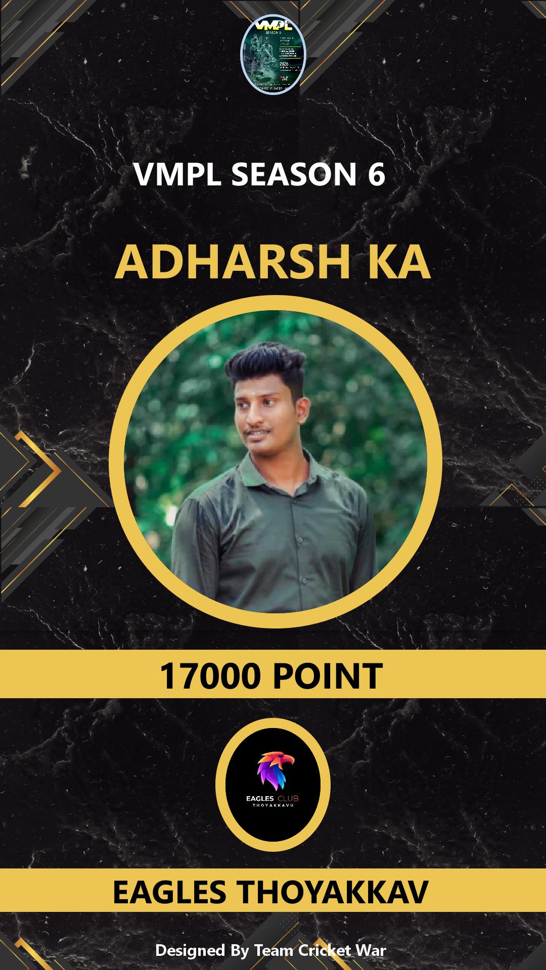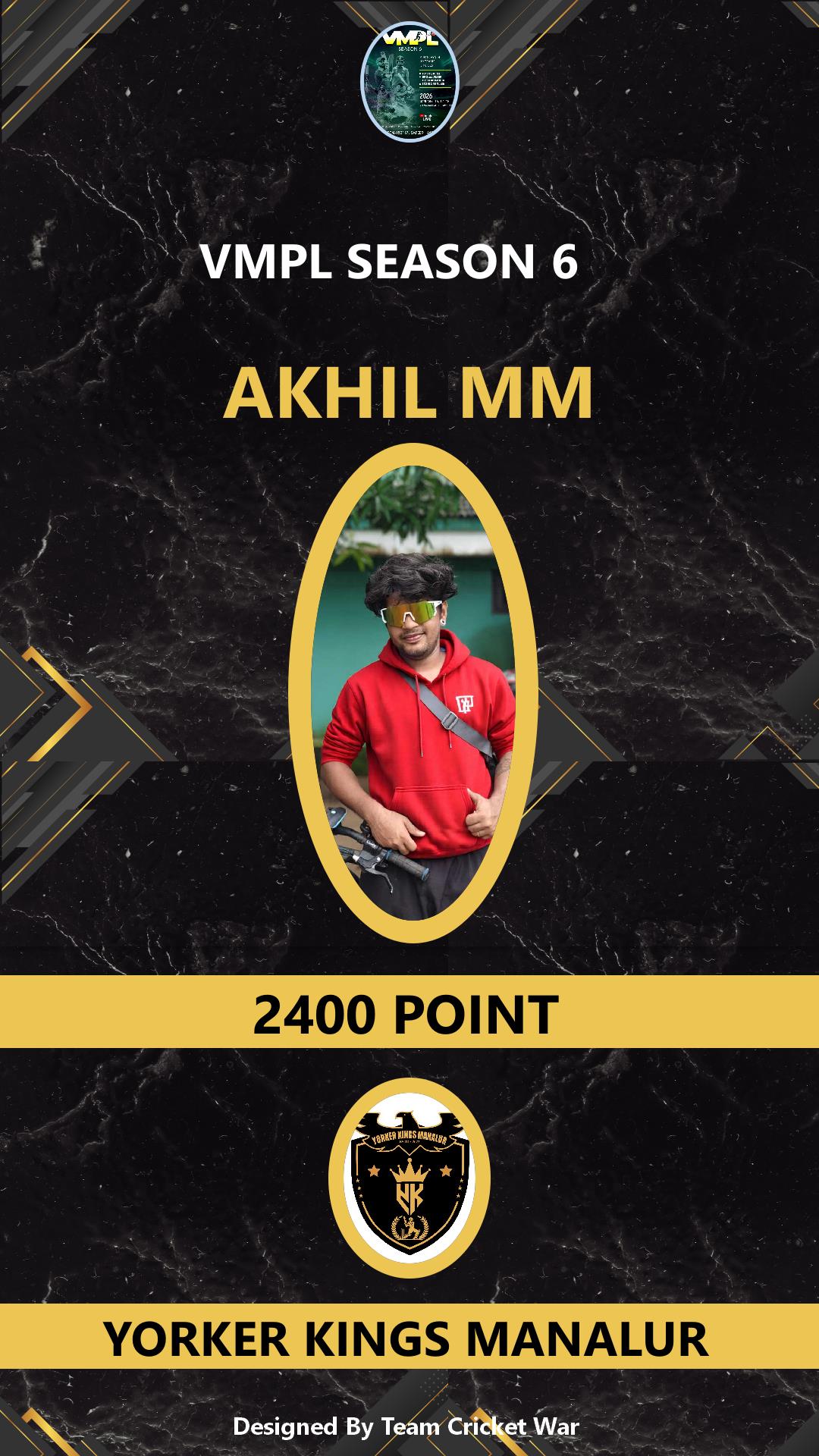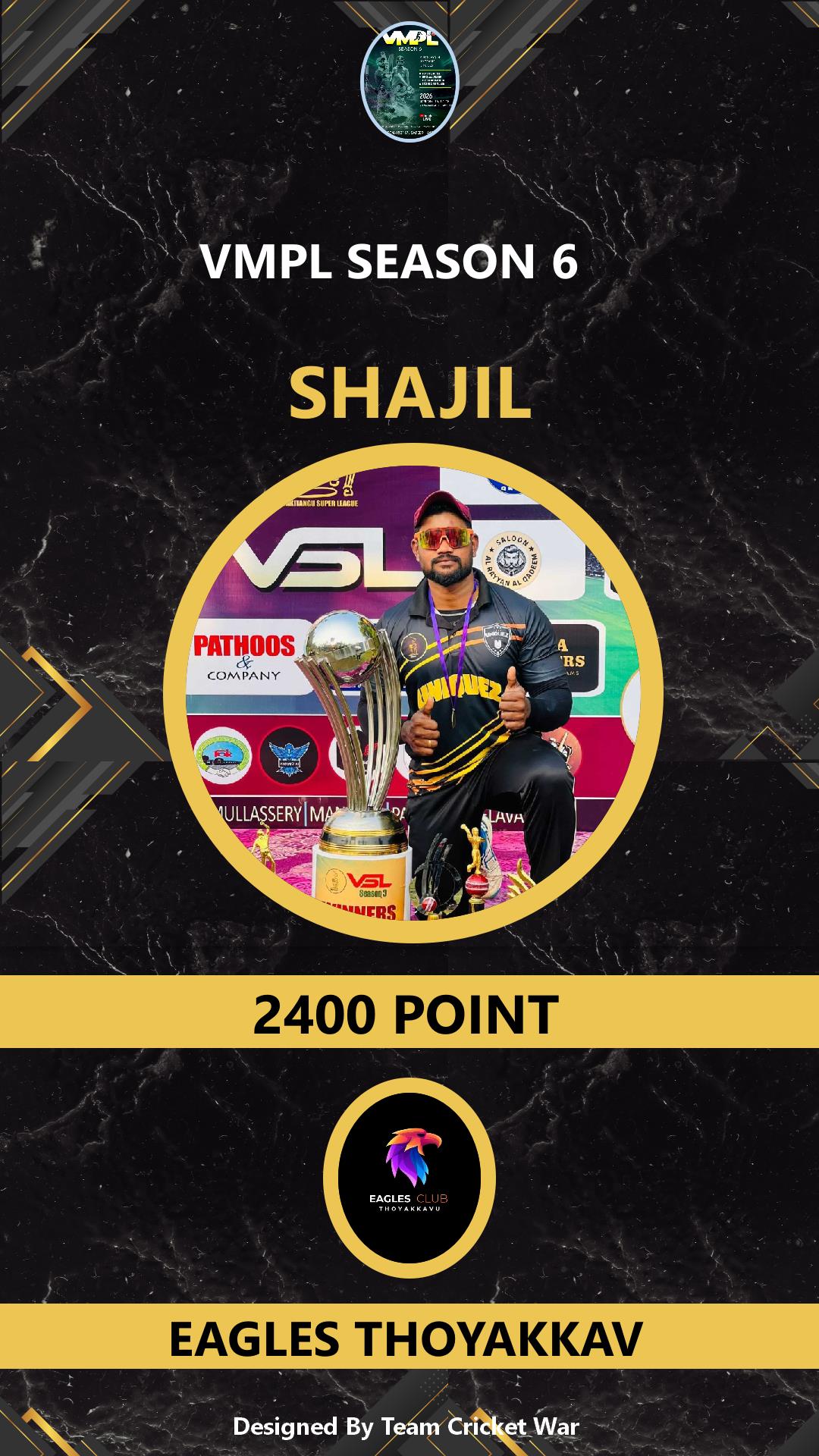 BOWLING ALLROUNDER, AGE : 29 MULLASSERY Bid Amount : 2400 Team : EAGLES THOYAKKAV Download ID Card VIEW PROFILE |