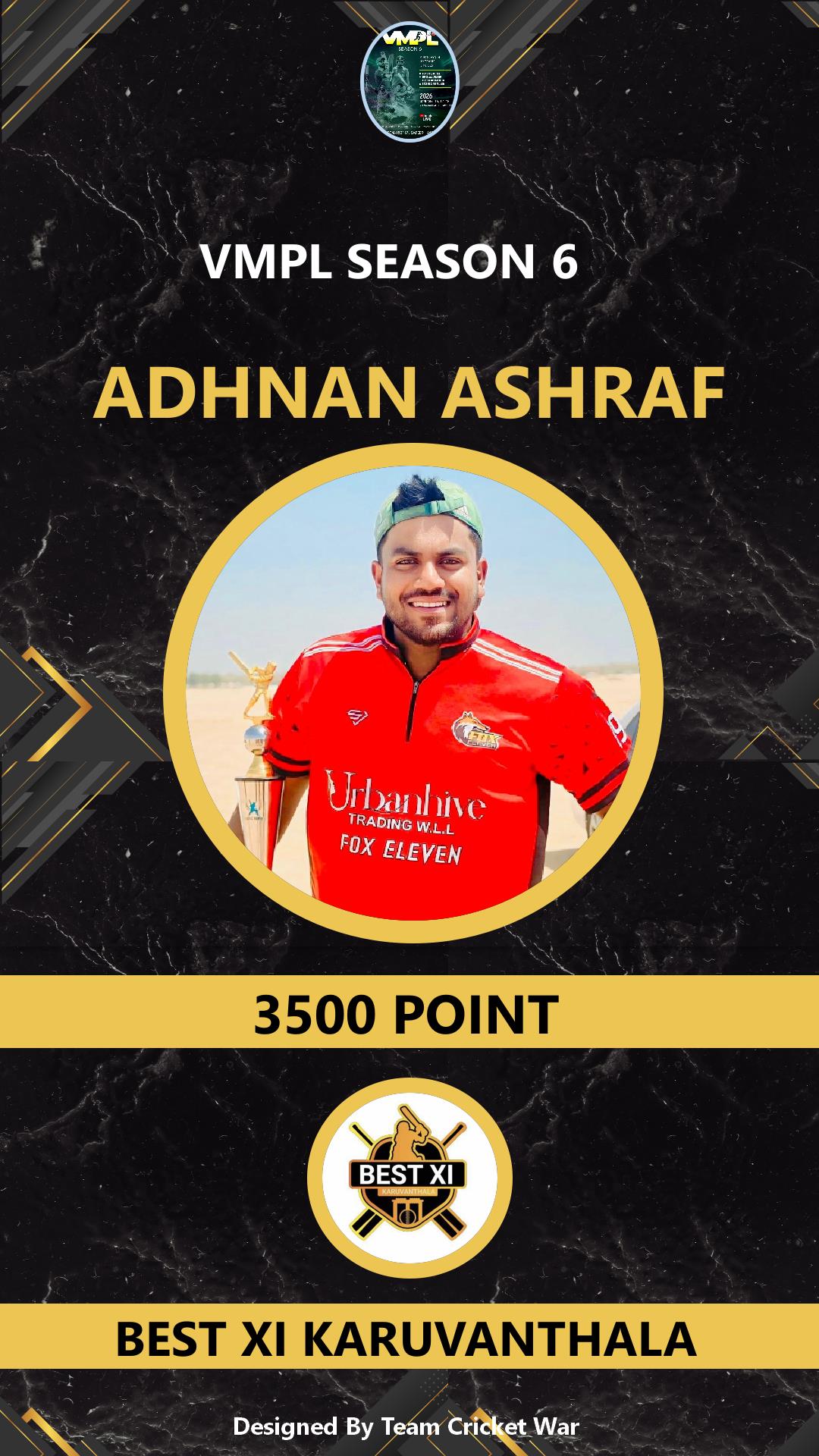 ALLROUNDER, AGE : 33 KETTUNGAL Bid Amount : 3500 Team : BEST XI KARUVANTHALA Download ID Card |