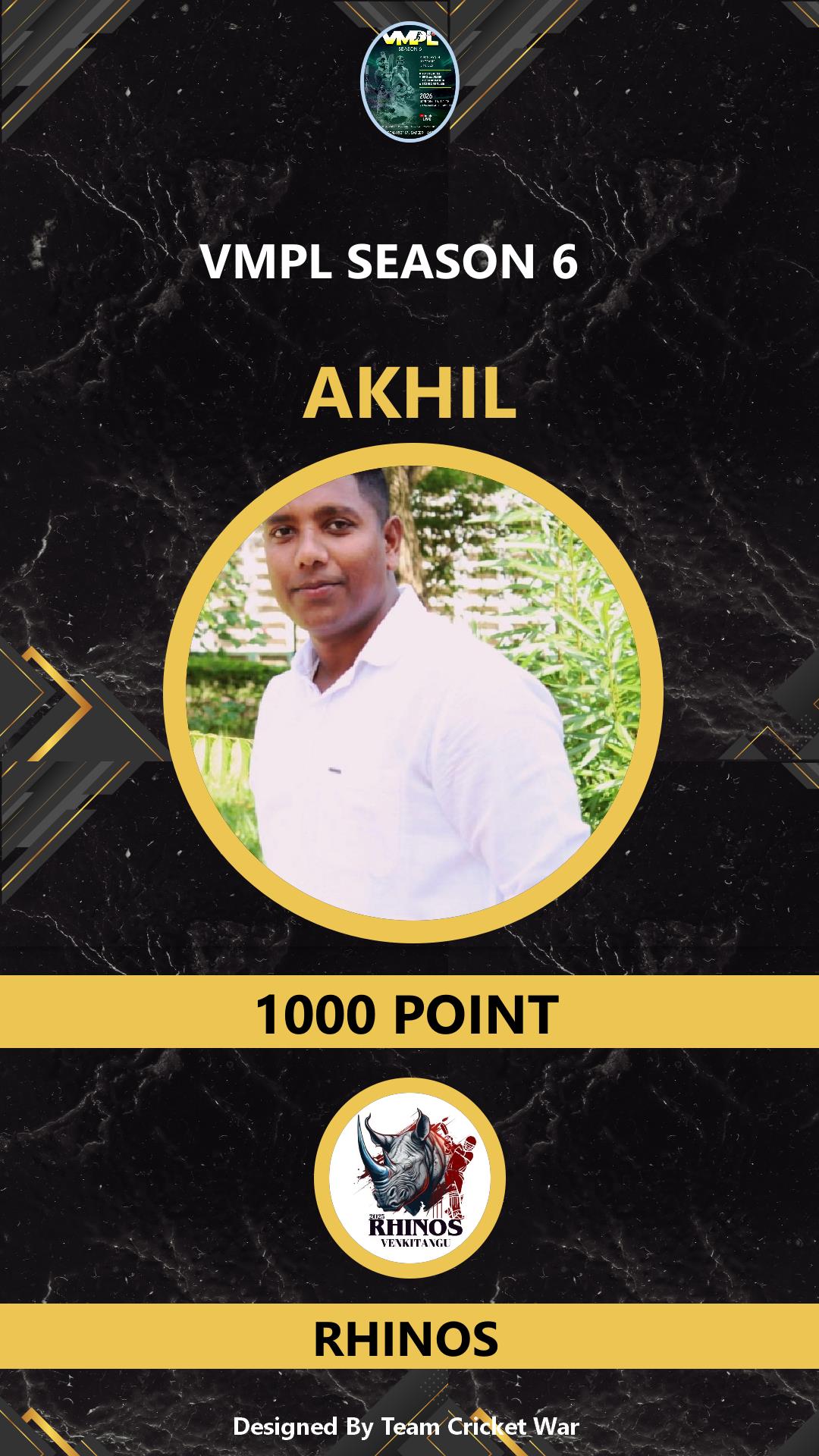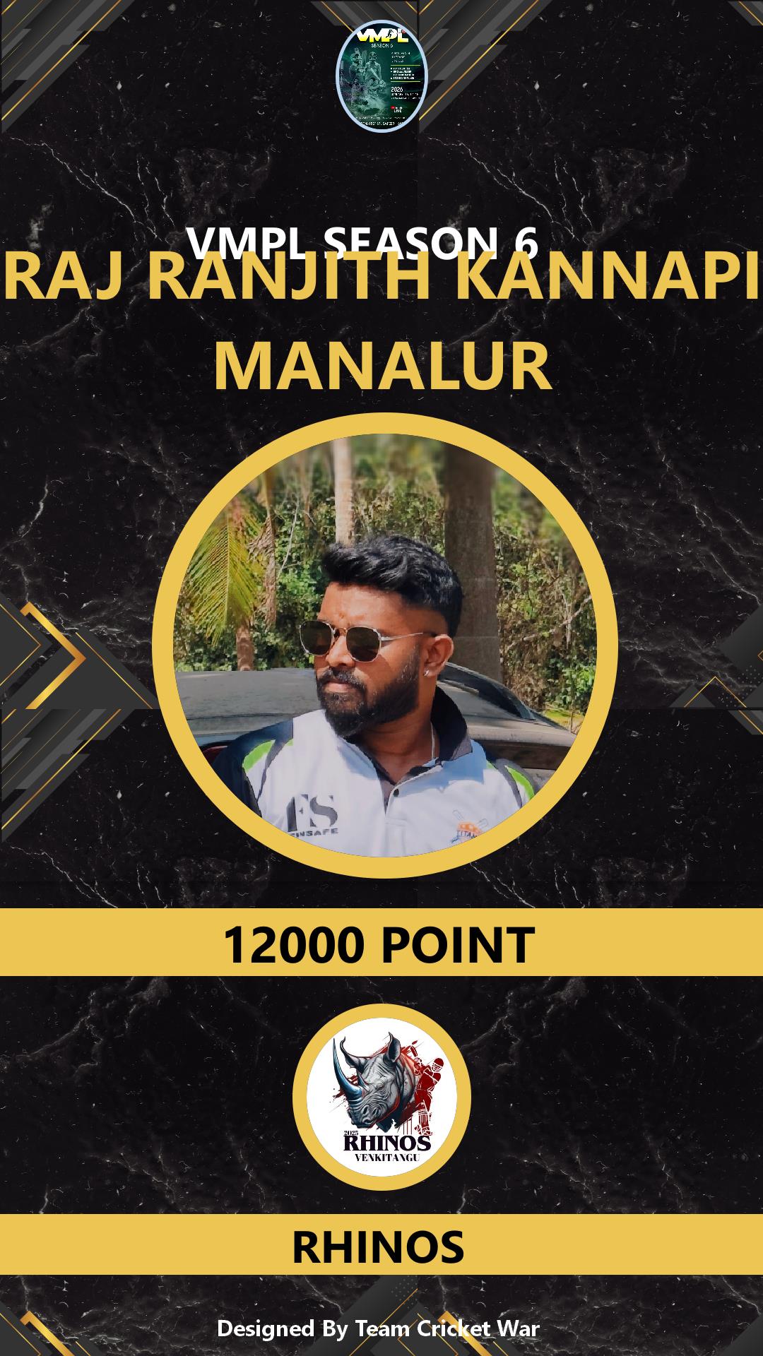 ALLROUNDER, AGE : 34 MANALUR Bid Amount : 12000 Team : RHINOS Download ID Card VIEW PROFILE |