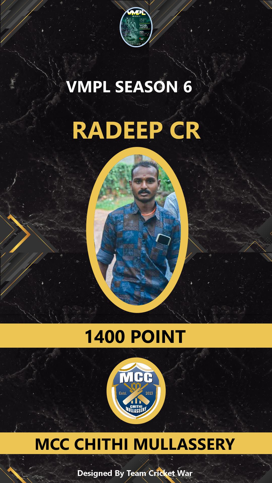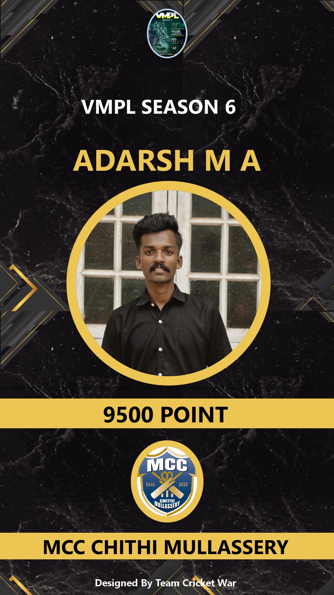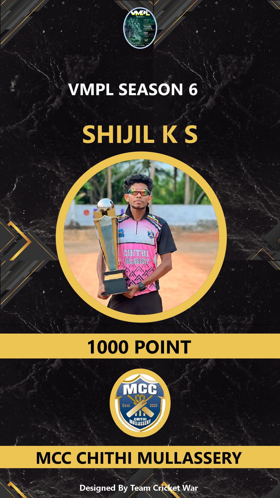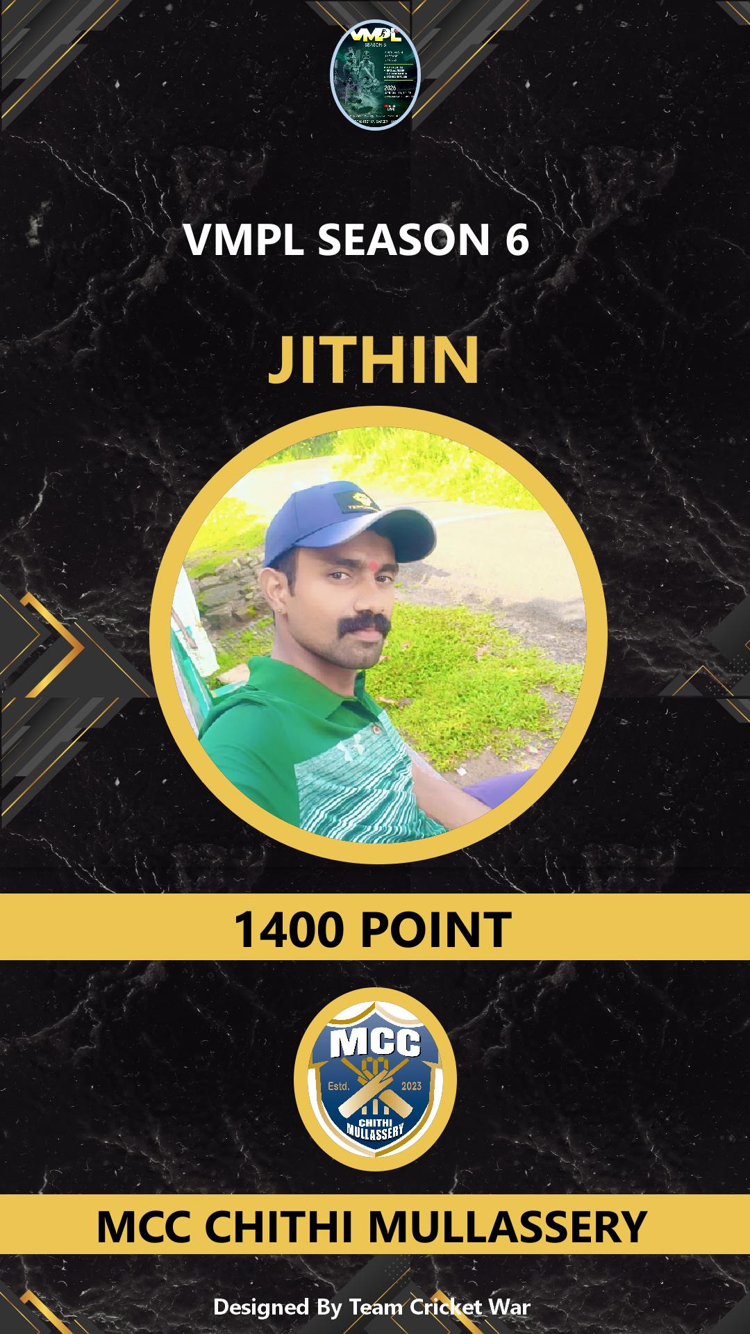 BATTING ALLROUNDER, AGE : 26 MULLASSERY Bid Amount : 1400 Team : MCC CHITHI MULLASSERY Download ID Card VIEW PROFILE |