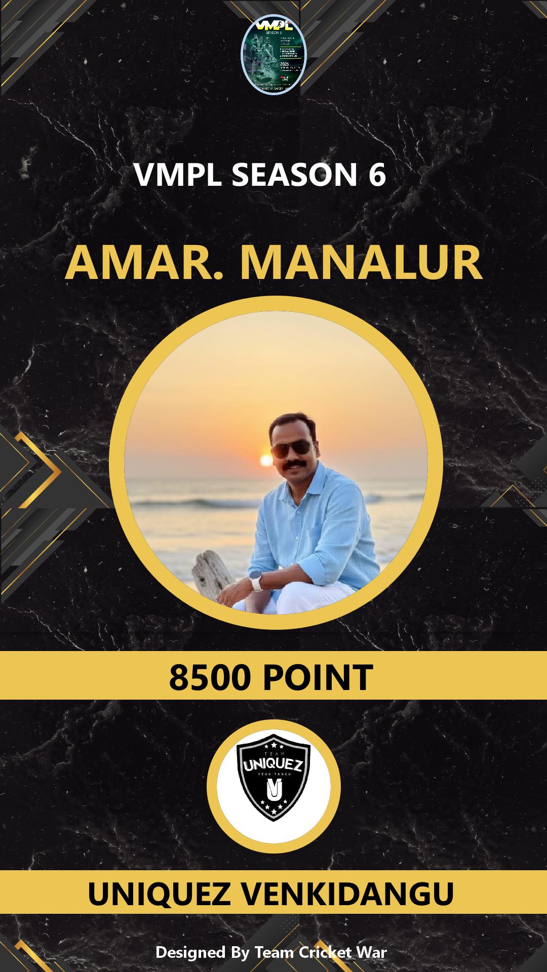 BATSMAN, AGE : 31 MANALUR Bid Amount : 6500 Team : SNA AZHIMAV Download ID Card VIEW PROFILE |