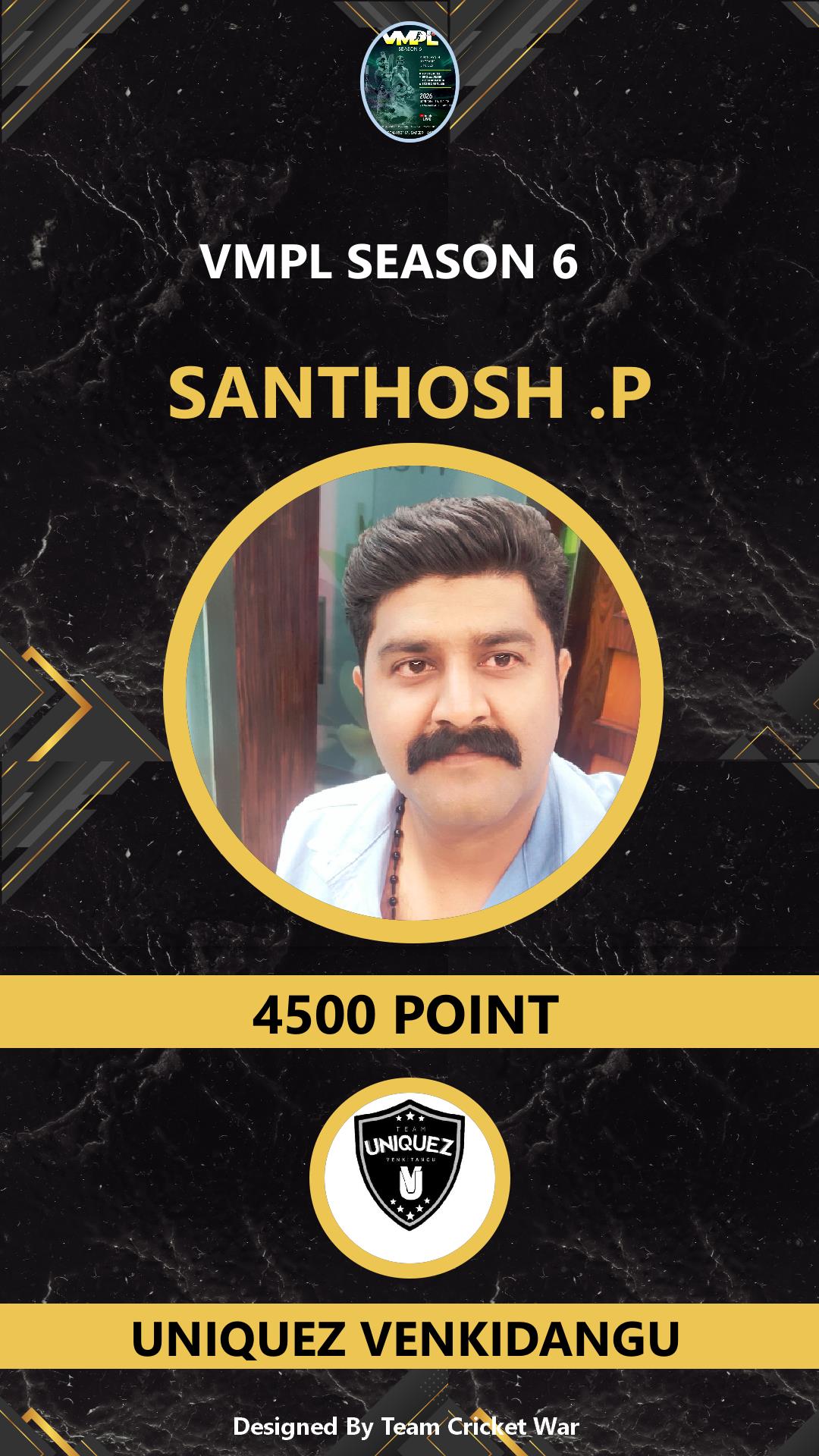 BOWLING ALLROUNDER, AGE : 42 MANALUR Bid Amount : 8500 Team : UNIQUEZ VENKIDANGU Download ID Card VIEW PROFILE |