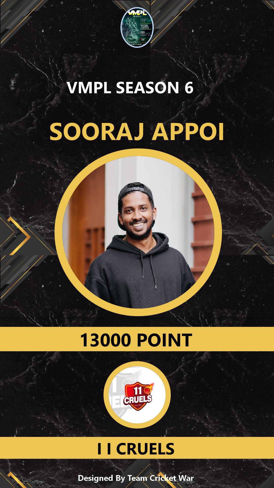ALLROUNDER, AGE : 31 VENMENAD Bid Amount : 1000 Team : I I CRUELS Download ID Card VIEW PROFILE |