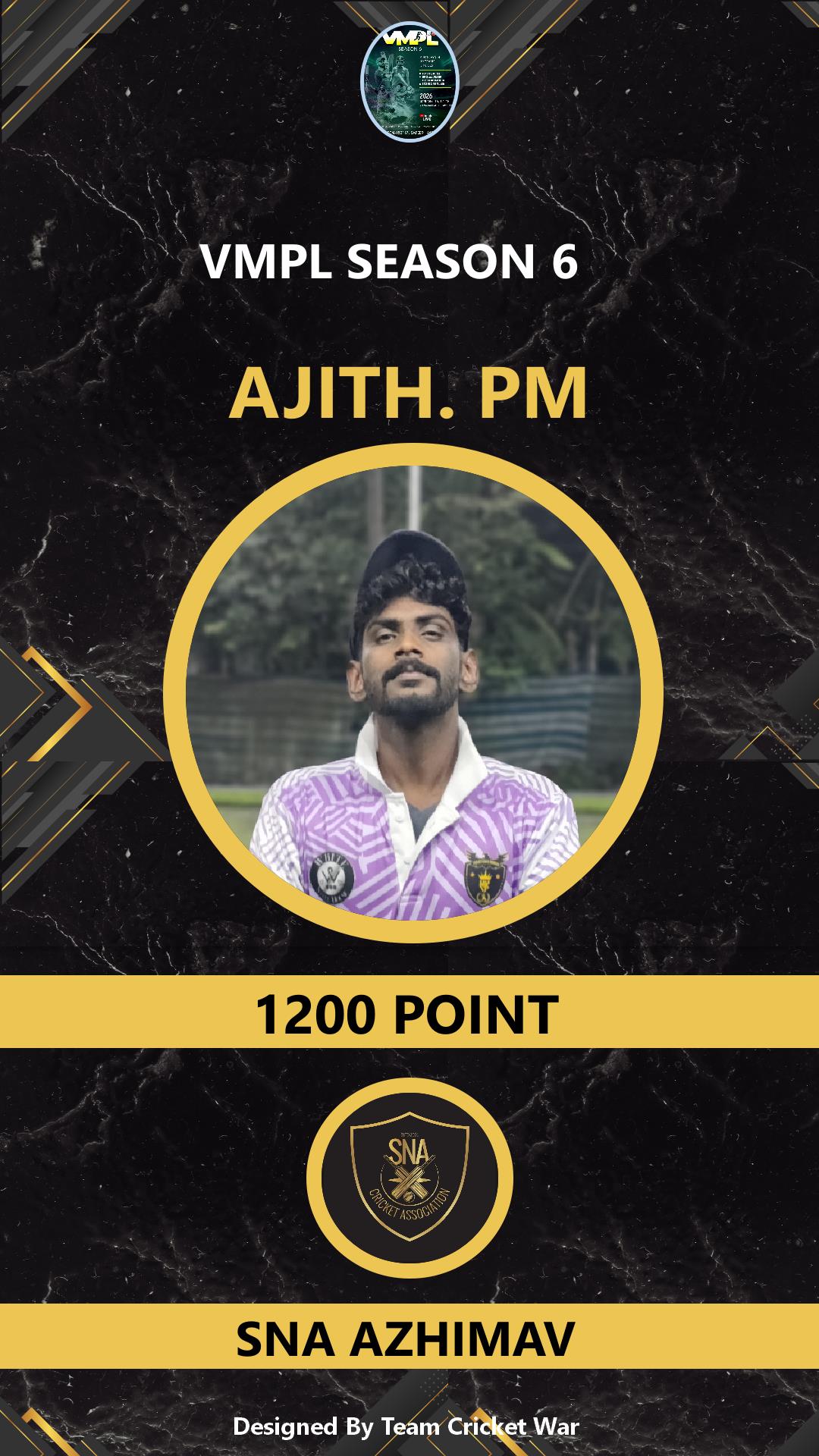 ALLROUNDER, AGE : 32 PADOOR Bid Amount : 1200 Team : SNA AZHIMAV Download ID Card VIEW PROFILE |