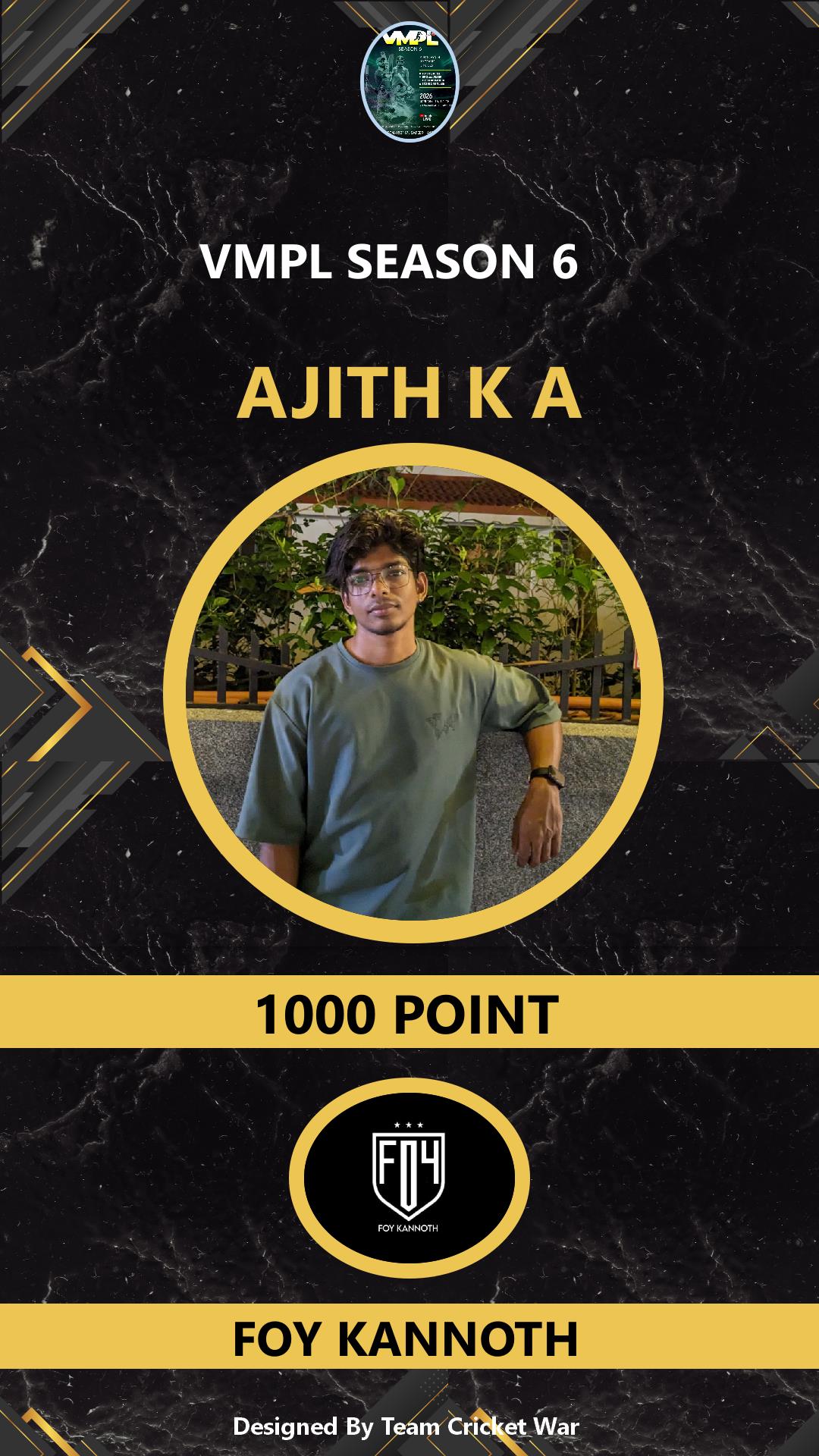 ALLROUNDER, AGE : 25 PADOOR Bid Amount : 1400 Team : FOY KANNOTH Download ID Card VIEW PROFILE |