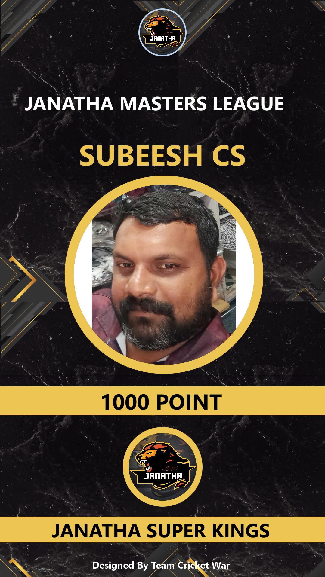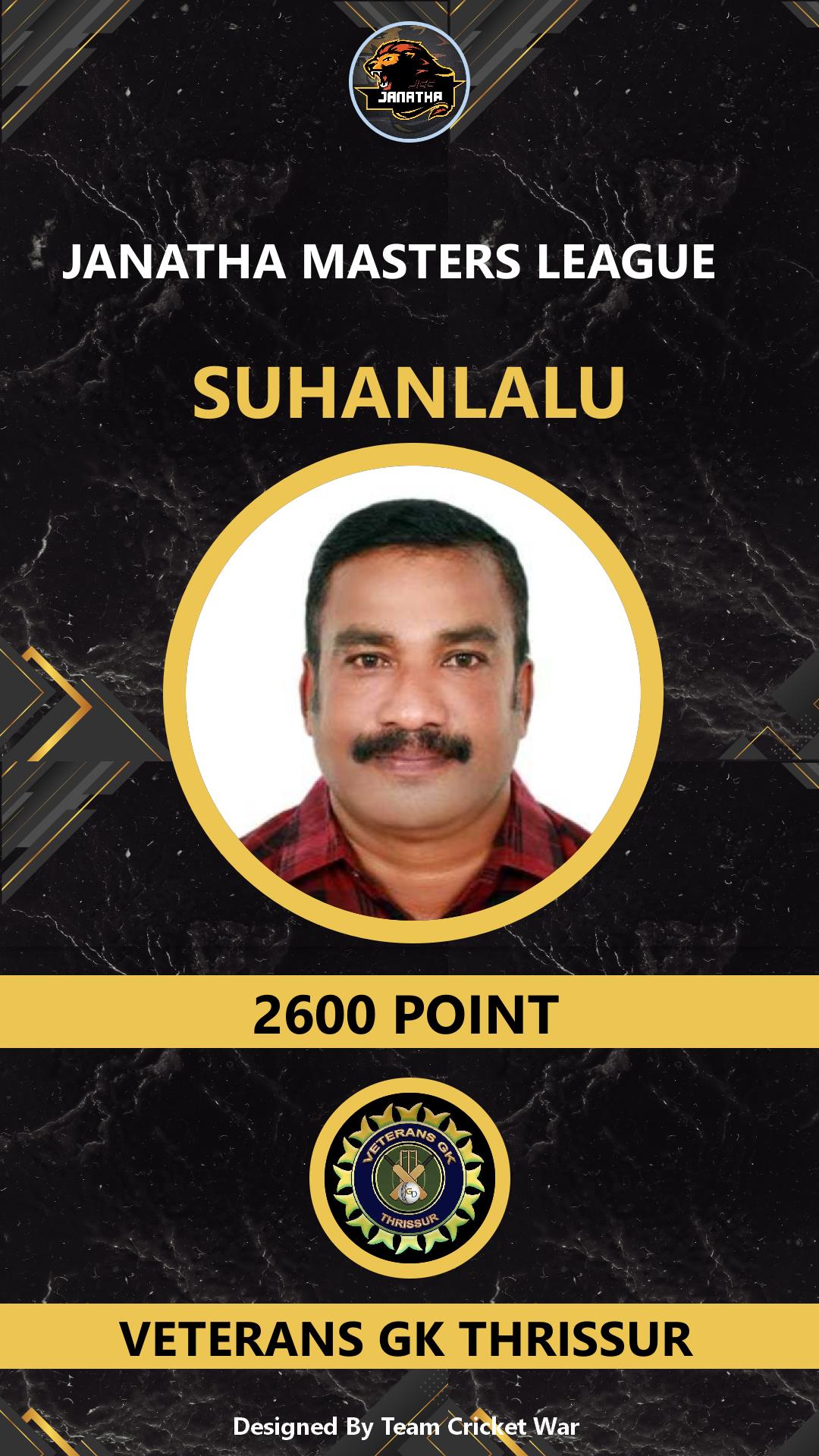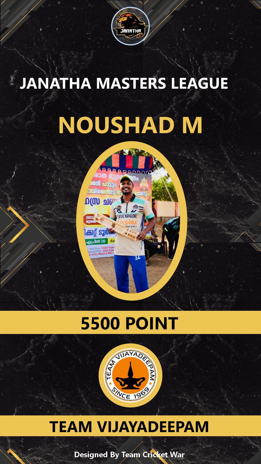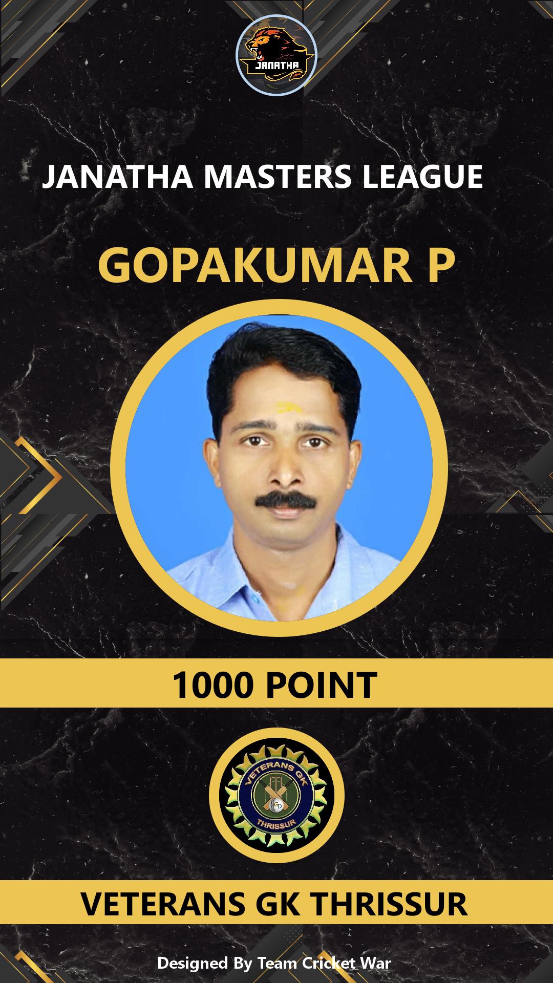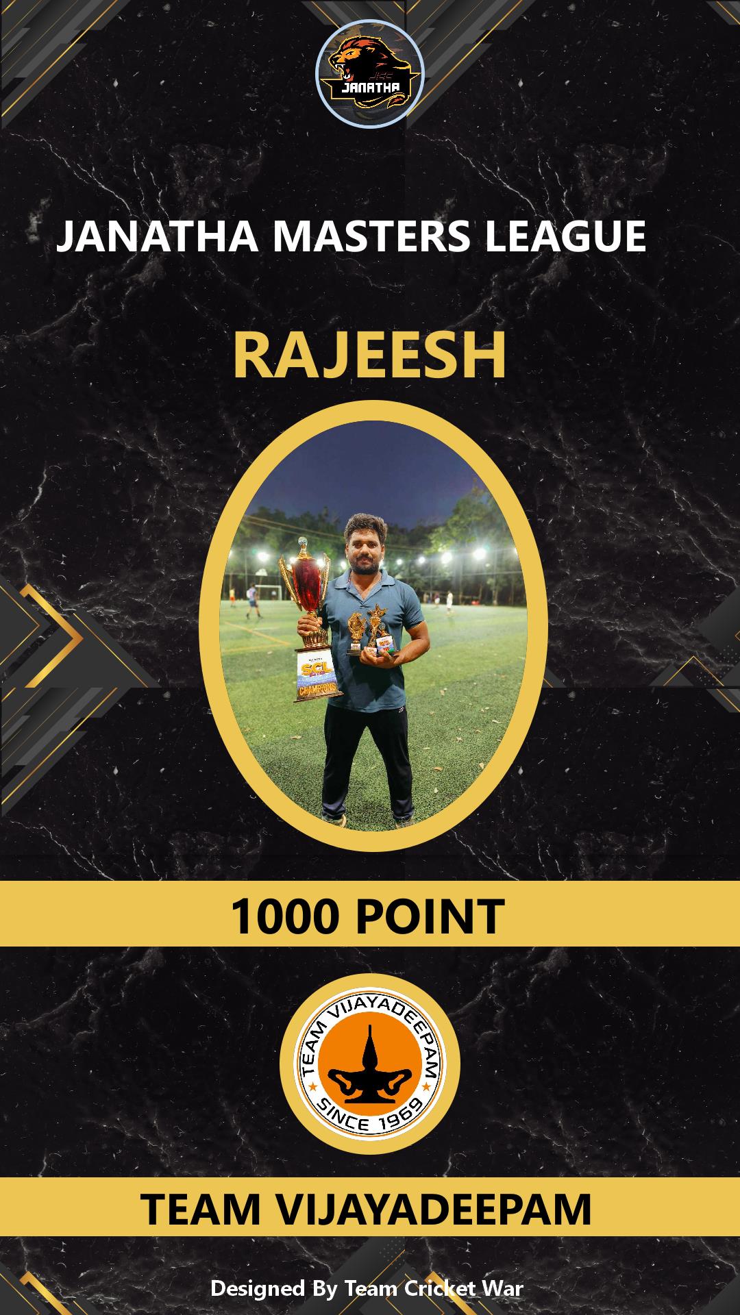 BATSMAN, AGE : 39 THRISSUR Bid Amount : 1000 Team : TEAM VIJAYADEEPAM Download ID Card VIEW PROFILE |