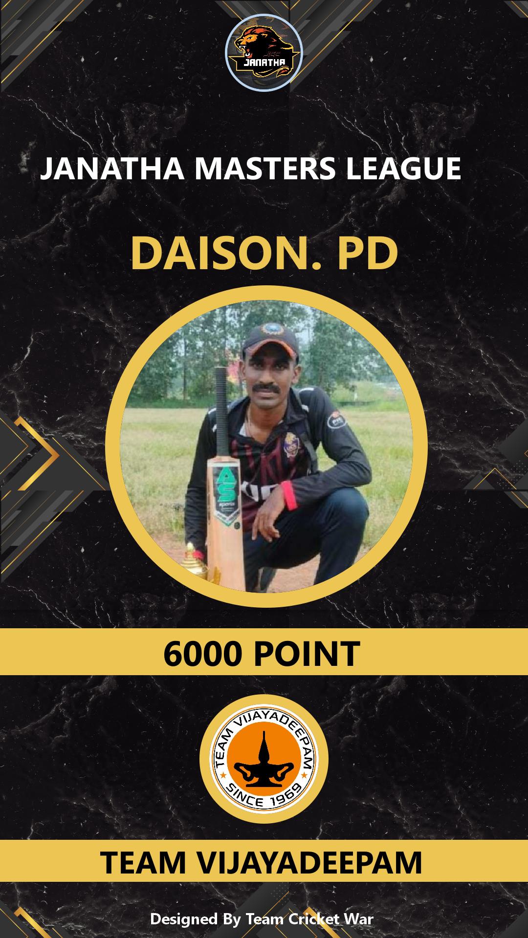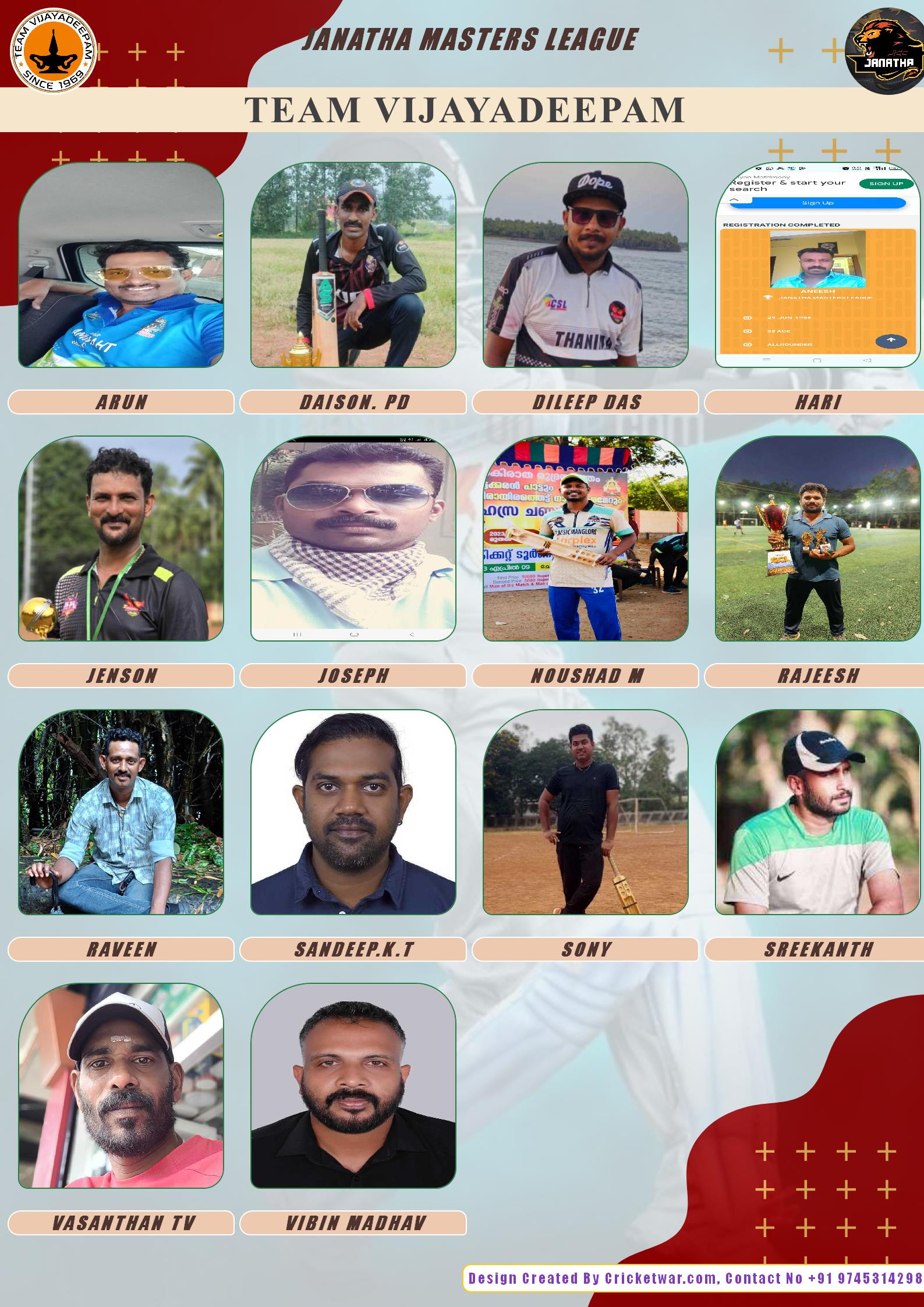 ALLROUNDER, AGE : 44 VARANDARAPPILLY Bid Amount : 1000 Team : JANATHA SUPER KINGS Download ID Card VIEW PROFILE |