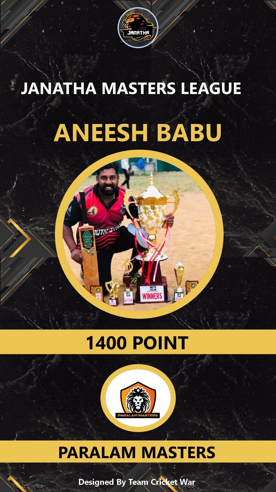 ALLROUNDER, AGE : 39 AVINISSERY Bid Amount : 1800 Team : PARALAM MASTERS Download ID Card VIEW PROFILE |