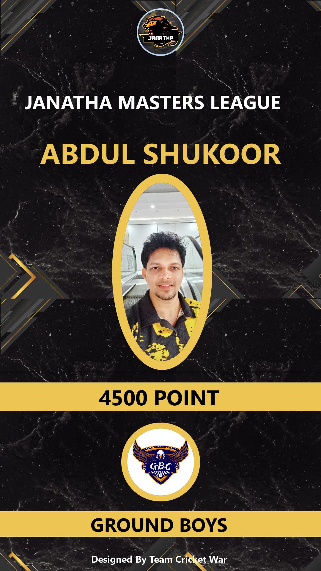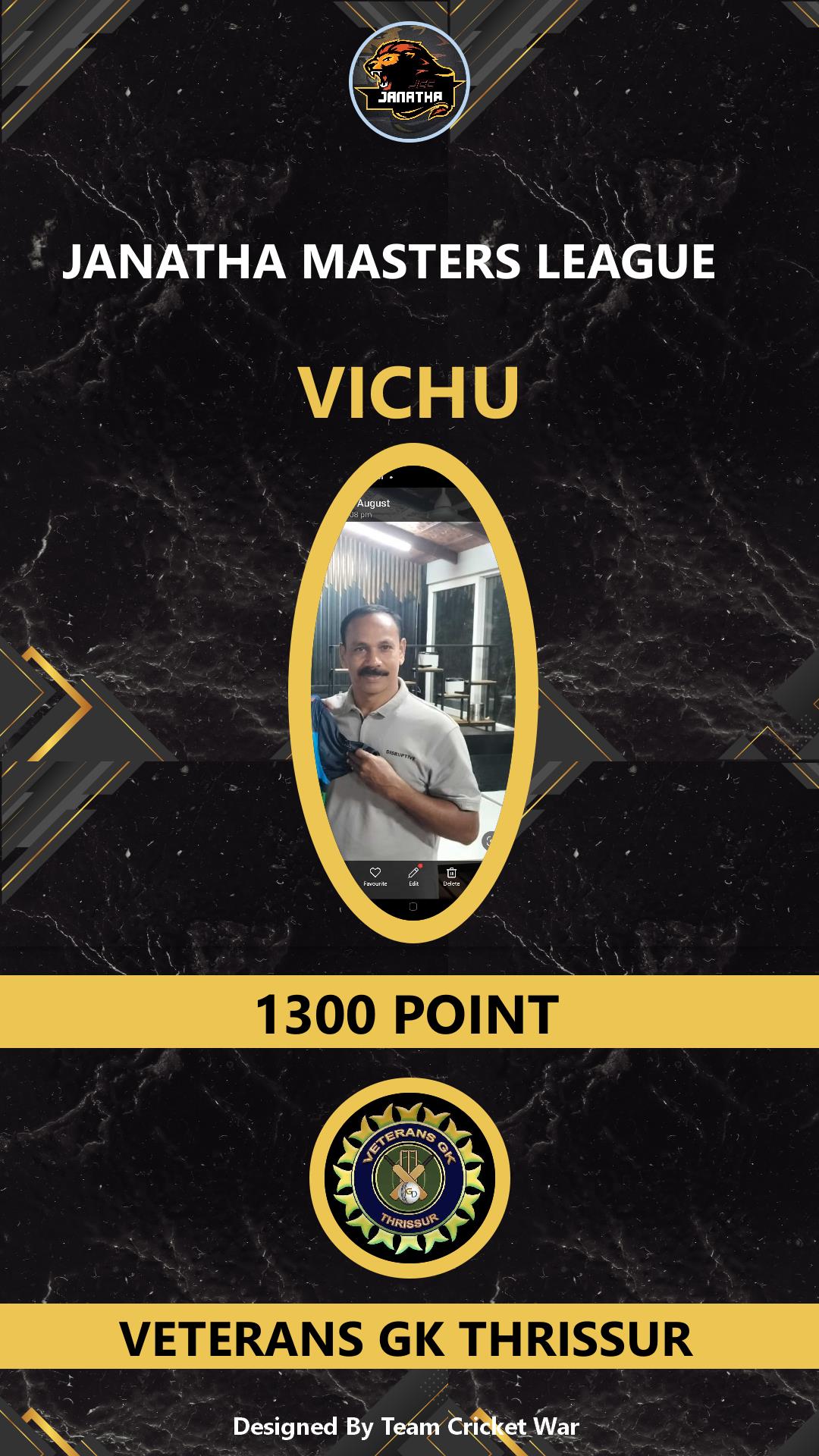 BOWLING ALLROUNDER, AGE : 41 VYLATHOOR Bid Amount : 1000 Team : GROUND BOYS Download ID Card VIEW PROFILE |