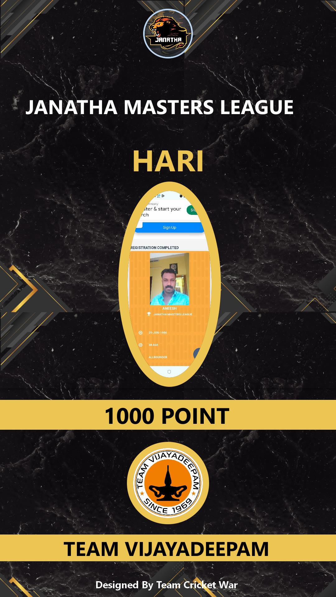 ALLROUNDER, AGE : 40 NANDIPULAM Bid Amount : 1000 Team : JANATHA SUPER KINGS Download ID Card VIEW PROFILE |