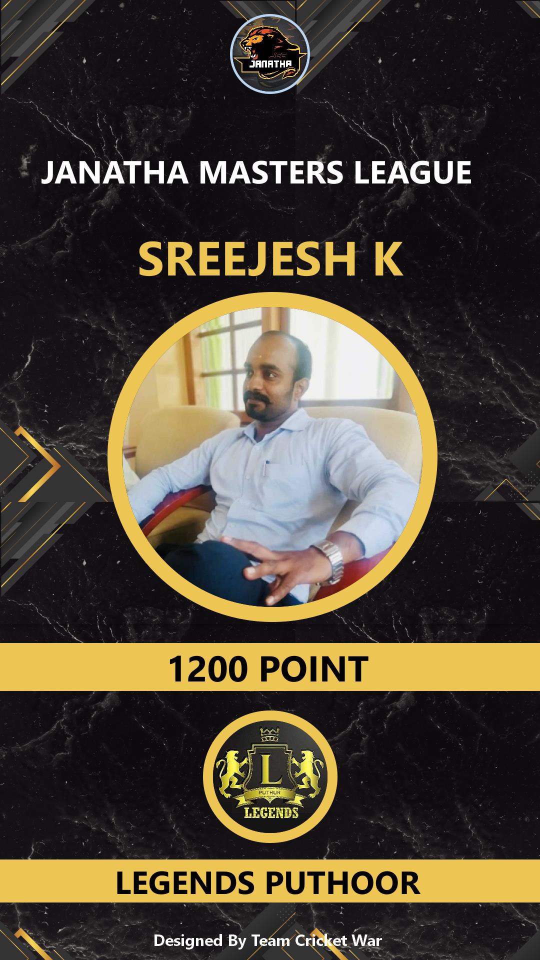 ALLROUNDER, AGE : 44 OLLUKARA Bid Amount : 1200 Team : LEGENDS PUTHOOR Download ID Card VIEW PROFILE |