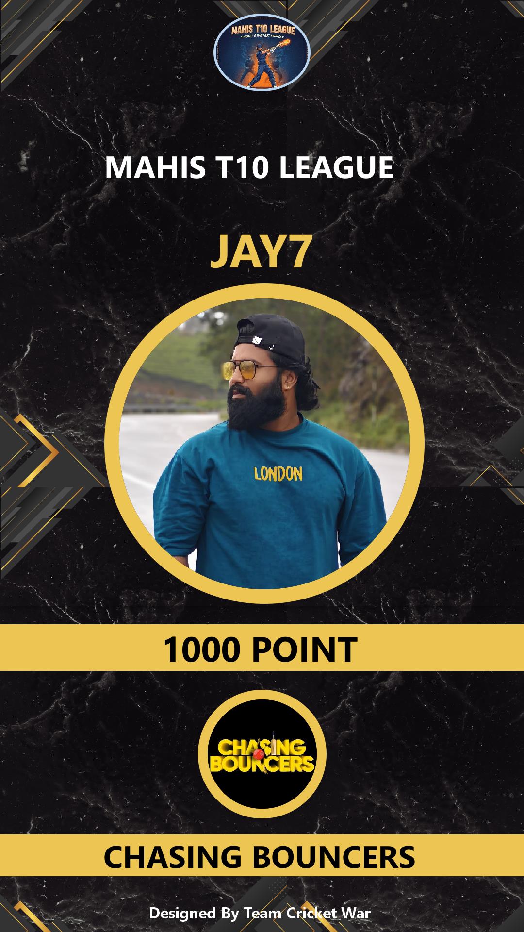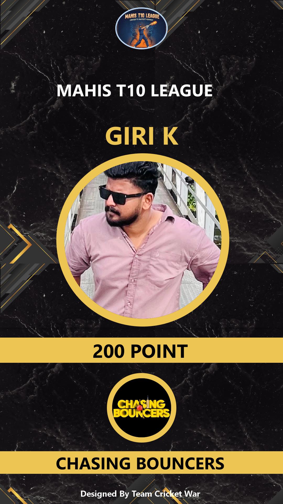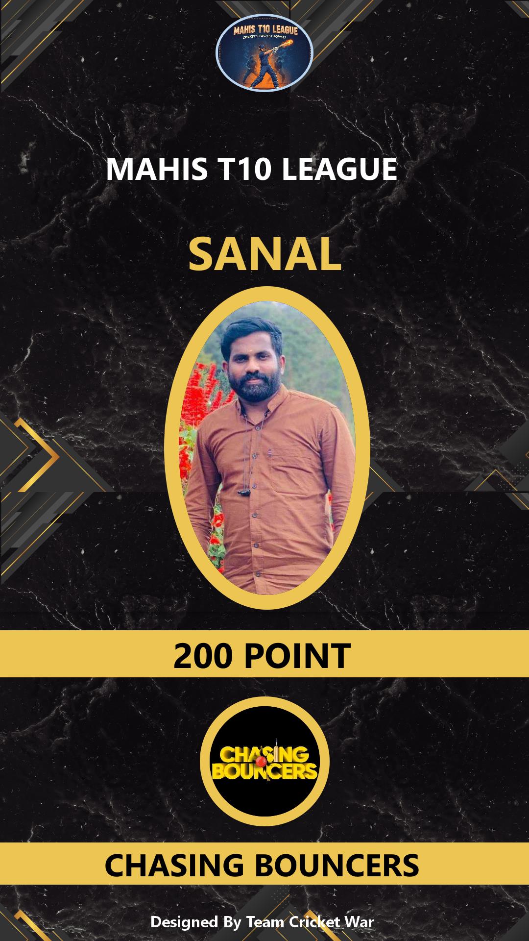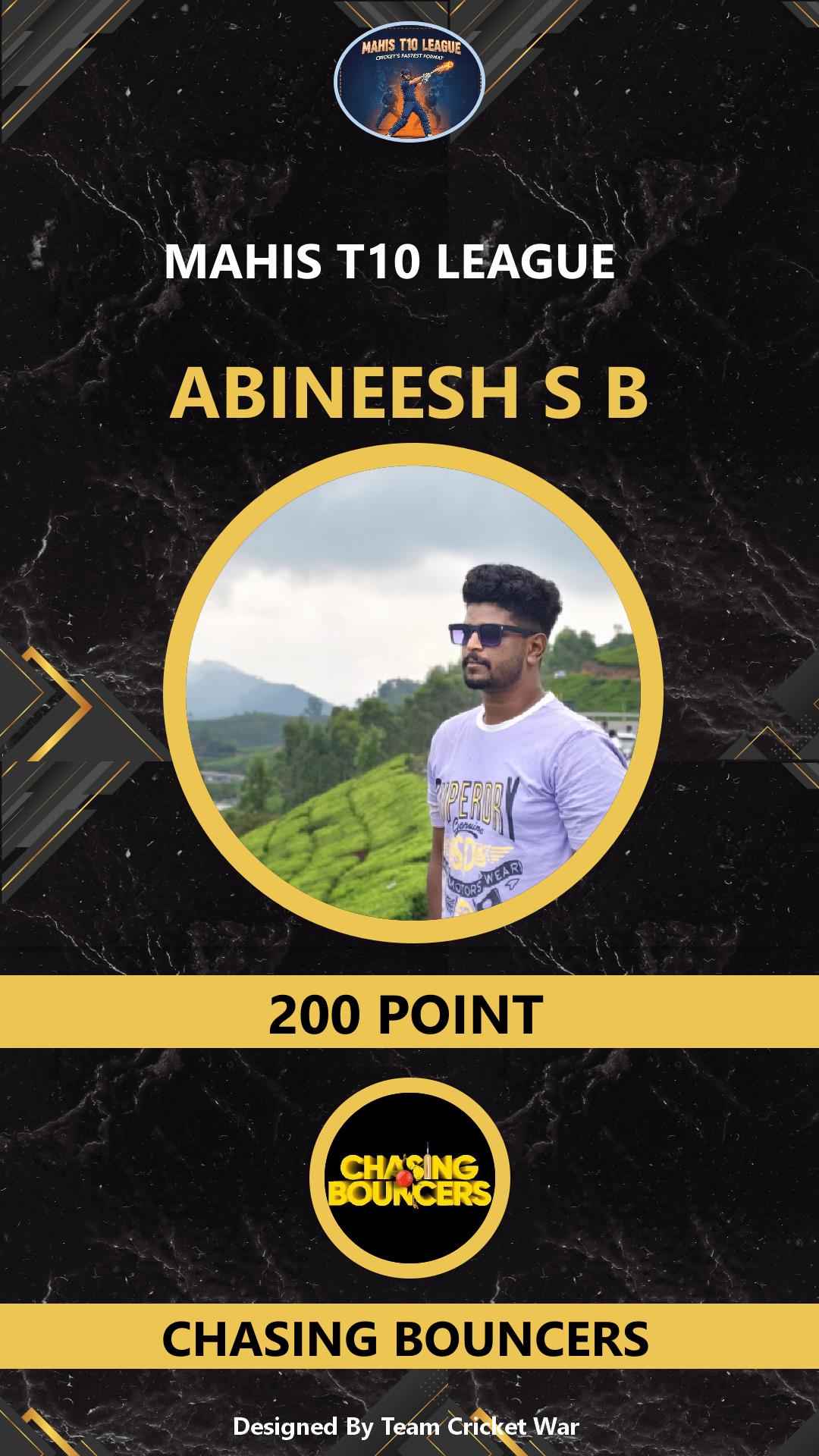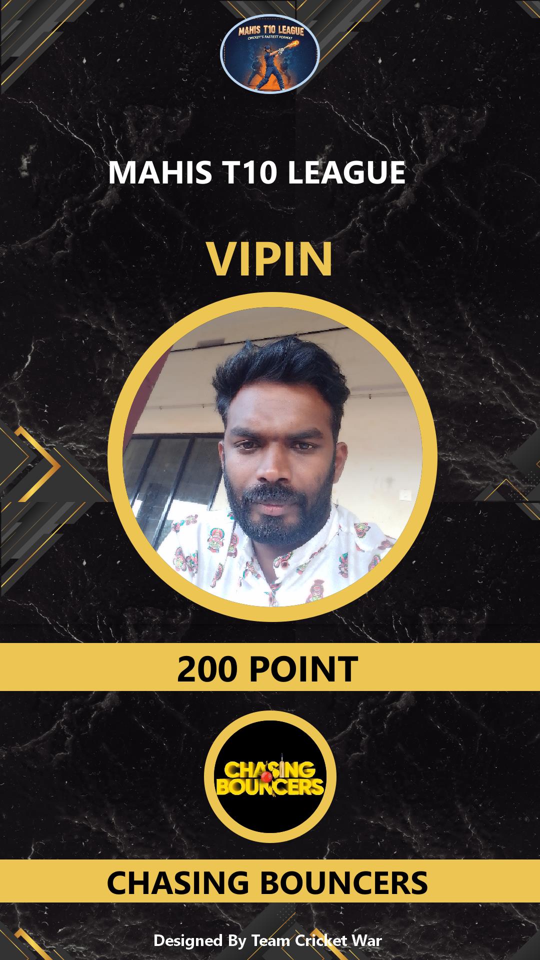 BATSMAN, AGE : 25 SHORANUR Bid Amount : 200 Team : CHASING BOUNCERS Download ID Card VIEW PROFILE  |