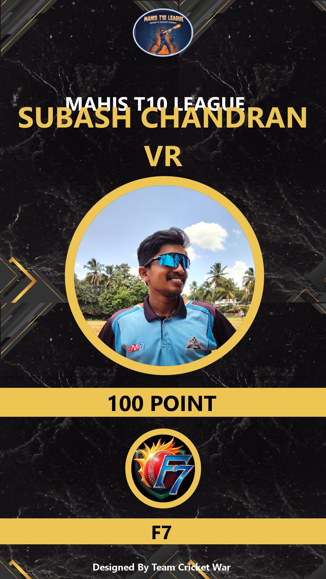 BATTING ALLROUNDER, AGE : 27 CHERUTHURUTHI Bid Amount : 100 Team : F7 Download ID Card VIEW PROFILE  |