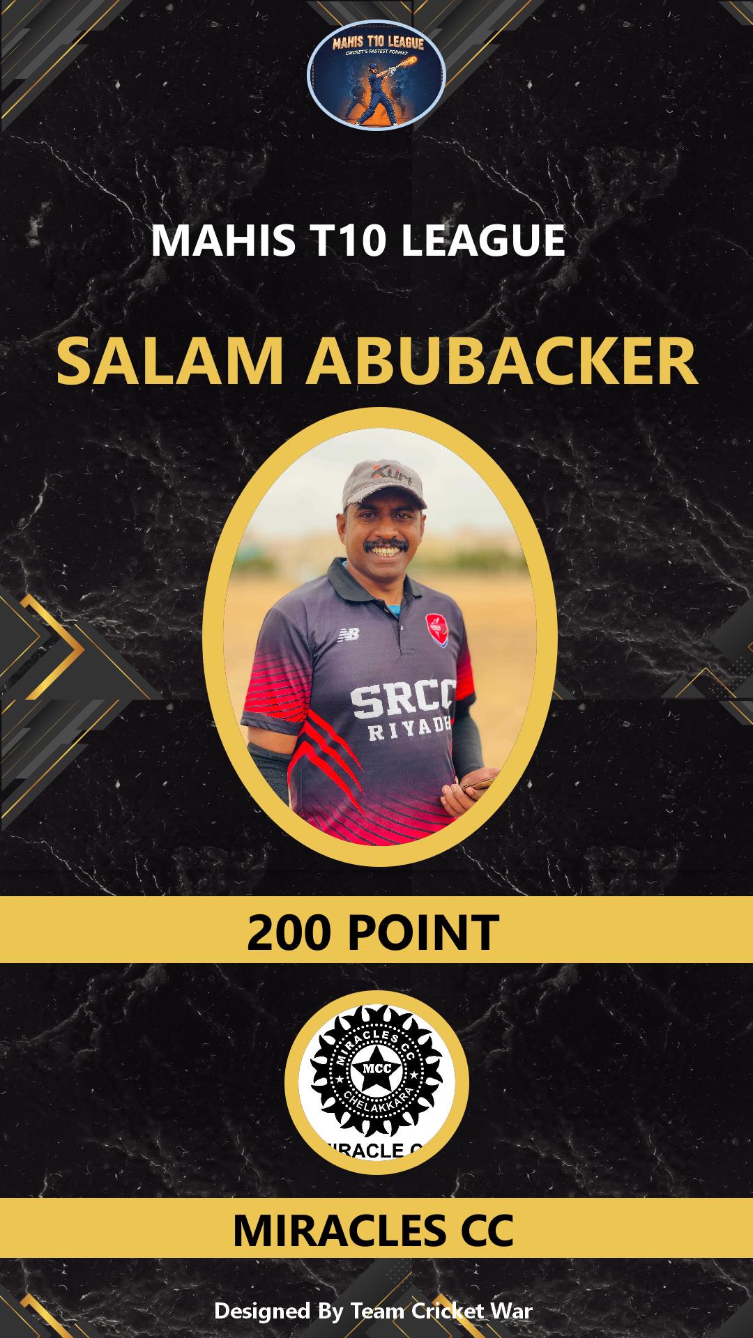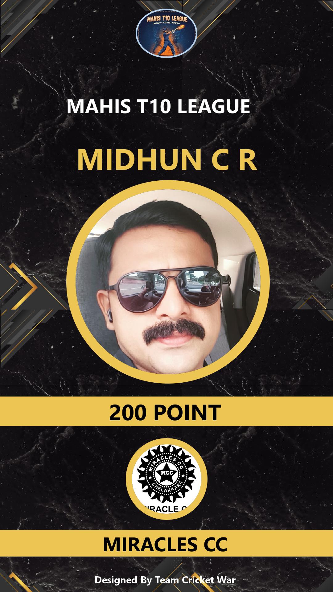 BATSMAN, AGE : 38 MULLURKKARA Bid Amount : 200 Team : MIRACLES CC Download ID Card VIEW PROFILE  |