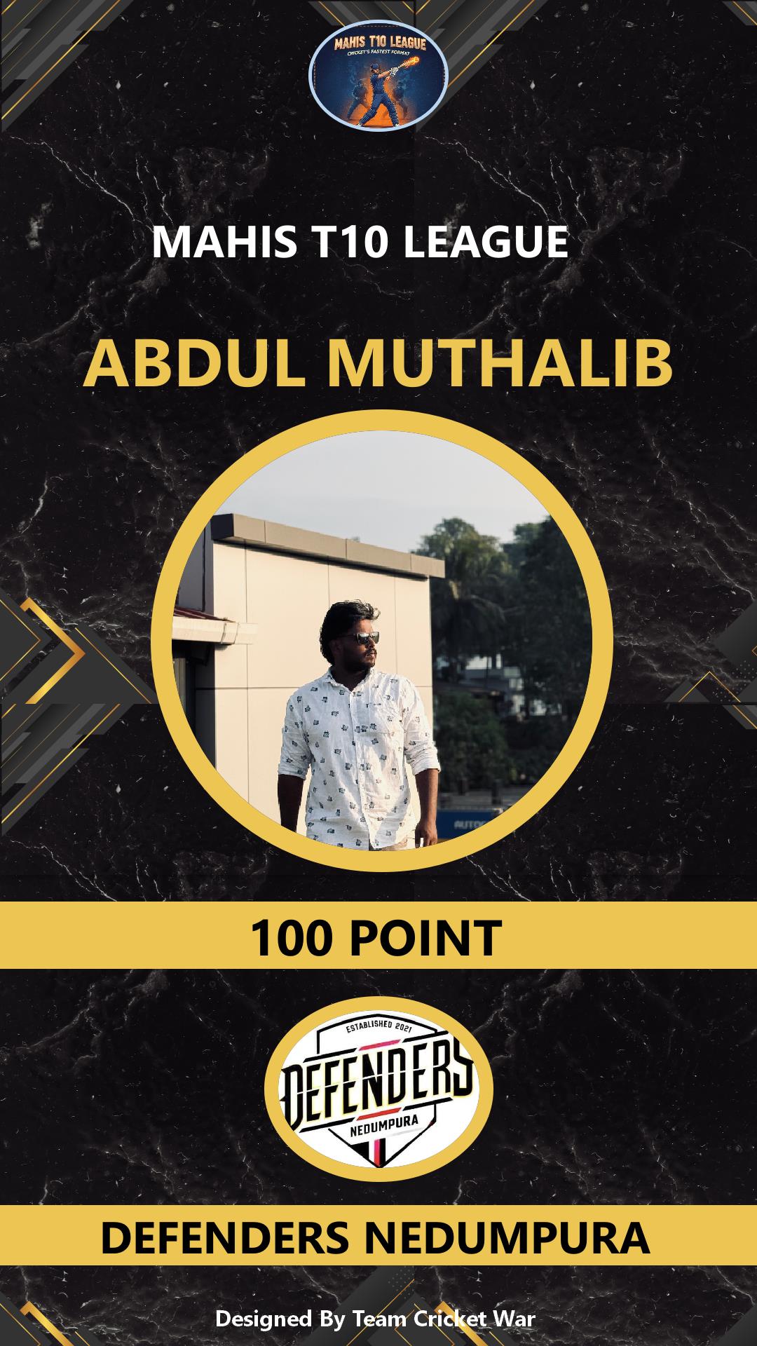 BATTING ALLROUNDER, AGE : 25 NEDUMPURA Bid Amount : 100 Team : DEFENDERS NEDUMPURA Download ID Card VIEW PROFILE  |