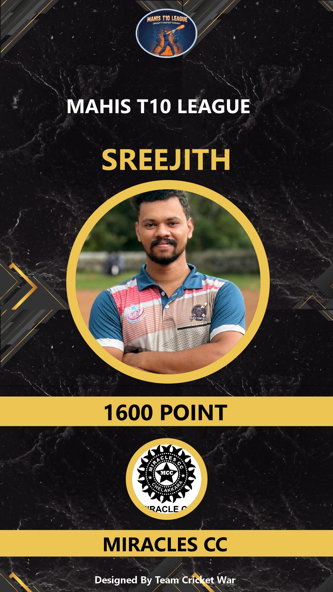 ALLROUNDER, AGE : 33 CHERUTHURUTHY Bid Amount : 900 Team : MIRACLES CC Download ID Card VIEW PROFILE  |