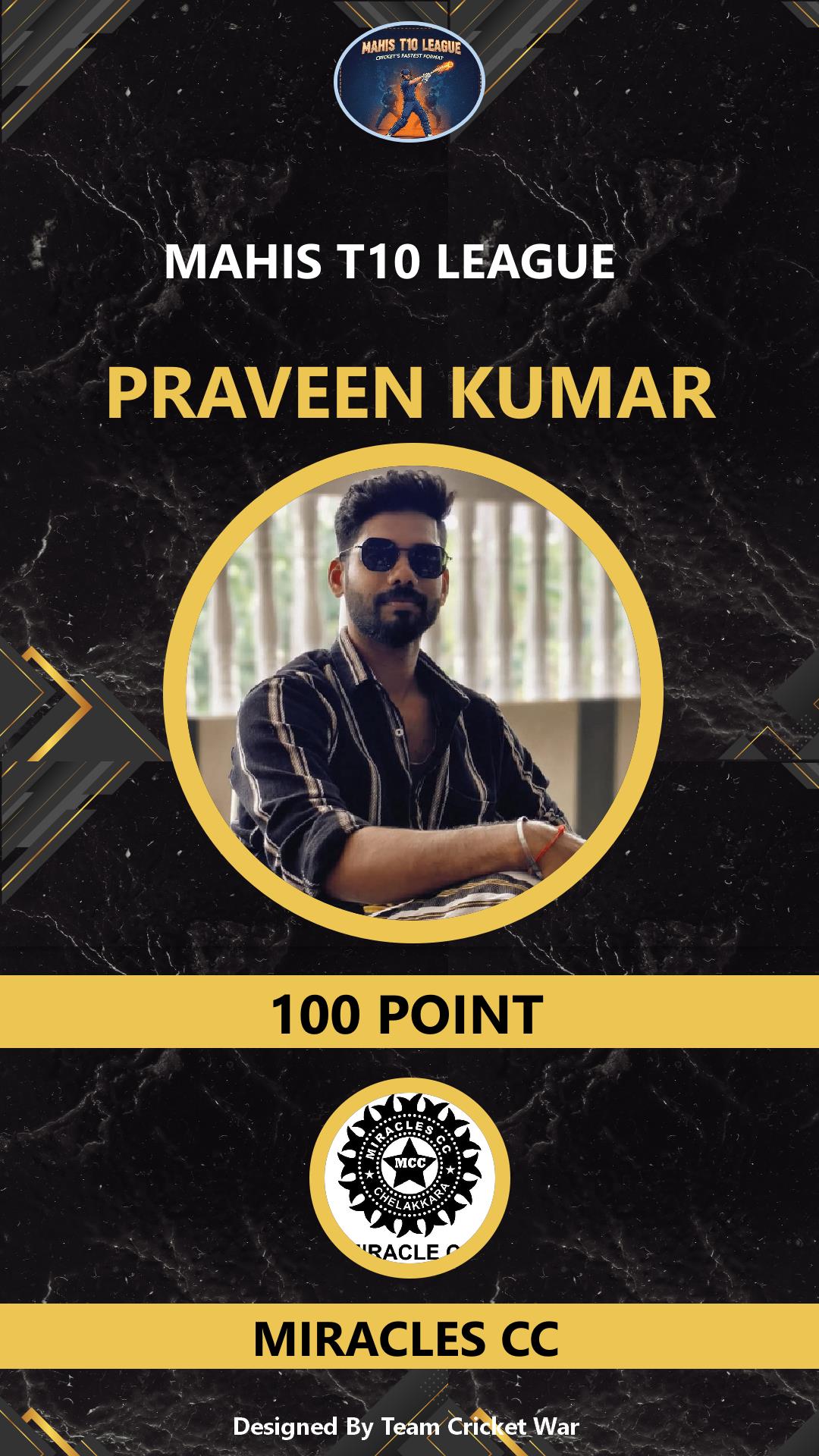 BATTING ALLROUNDER, AGE : 36 PANJAL Bid Amount : 100 Team : MIRACLES CC Download ID Card VIEW PROFILE  |