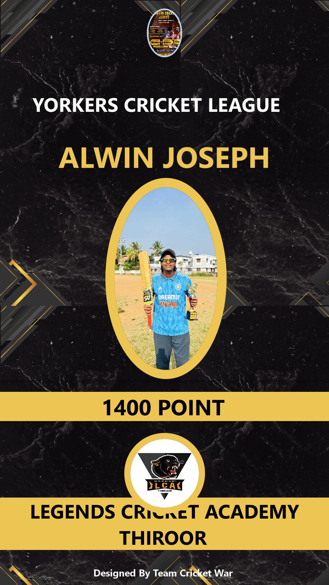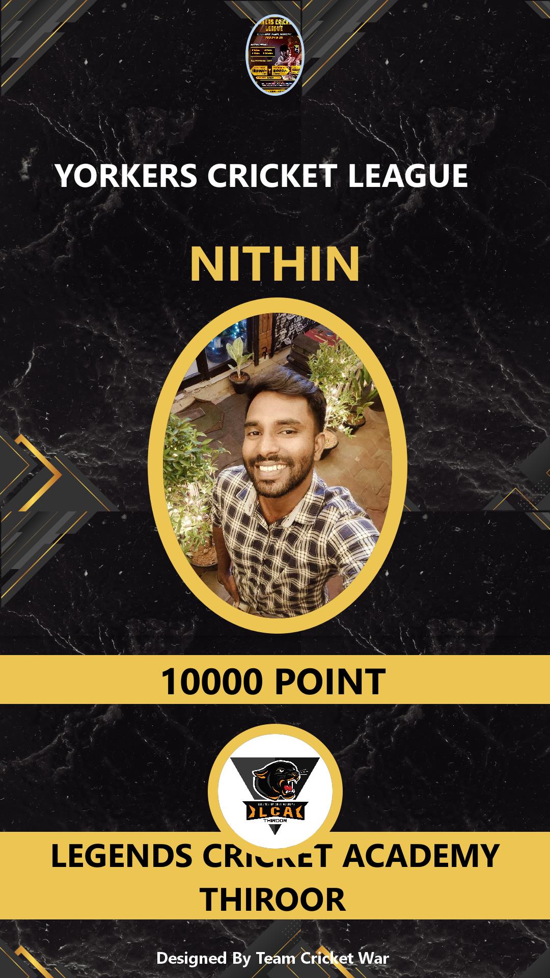 ALLROUNDER, AGE : 27 THIROOR Bid Amount : 1400 Team : LEGENDS CRICKET ACADEMY THIROOR Download ID Card VIEW PROFILE |