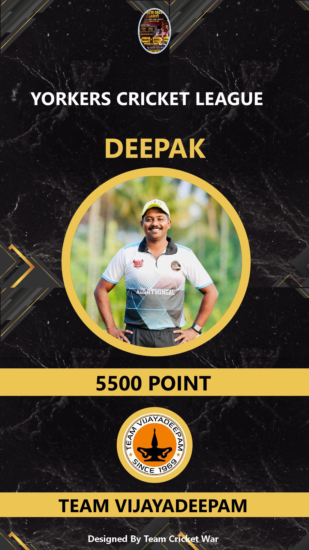 BATSMAN, AGE : 43 ????? Bid Amount : 2000 Team : TEAM VIJAYADEEPAM Download ID Card |