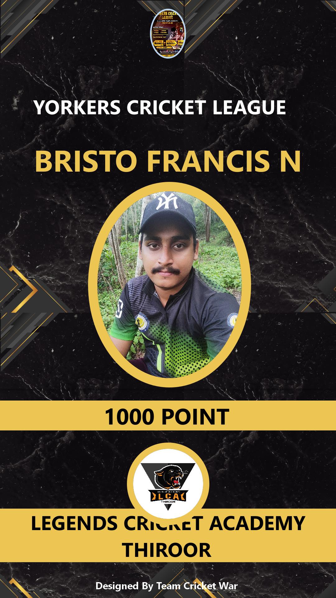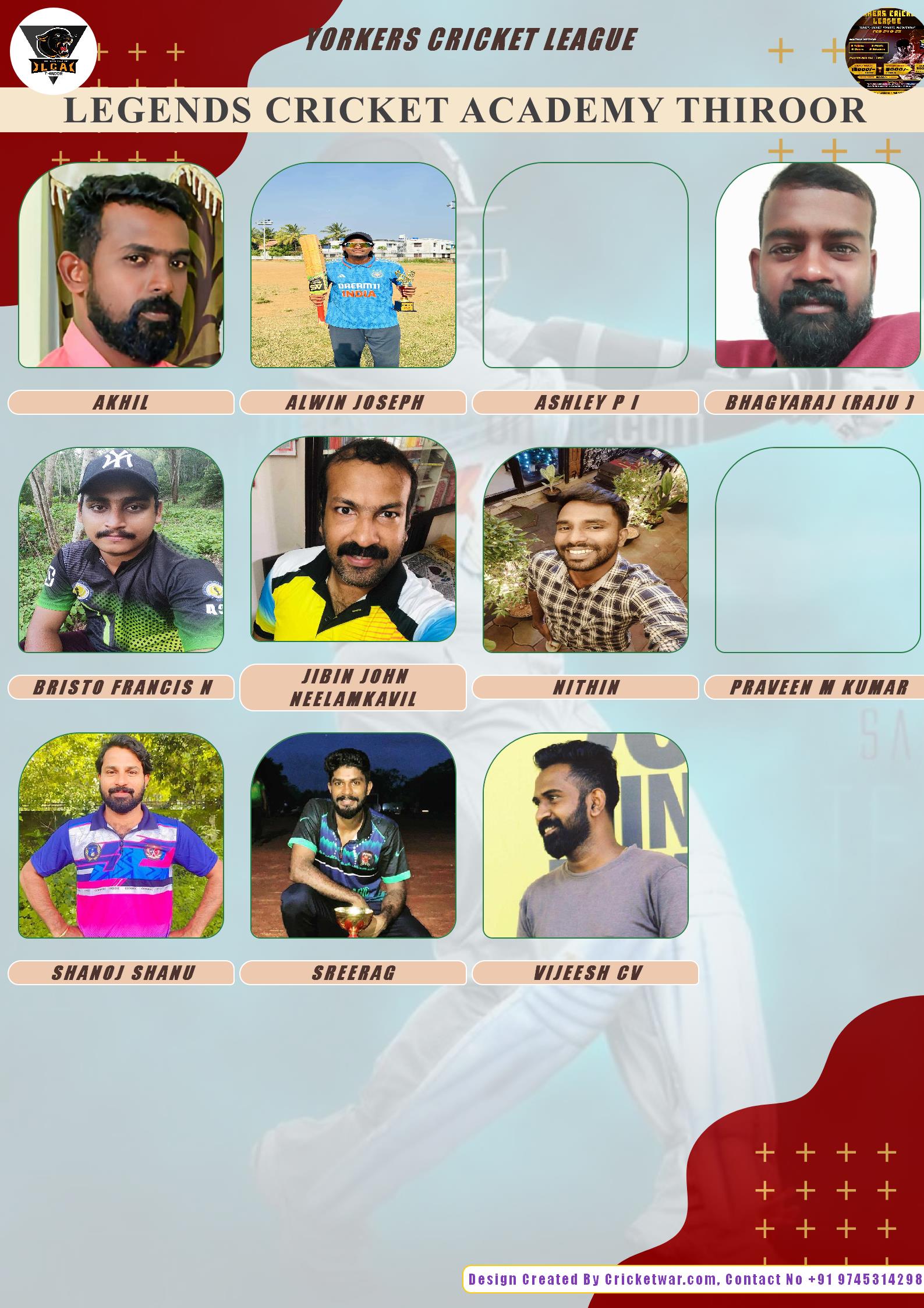 ALLROUNDER, AGE : 37 THIROOR Bid Amount : 1000 Team : LEGENDS CRICKET ACADEMY THIROOR Download ID Card VIEW PROFILE |