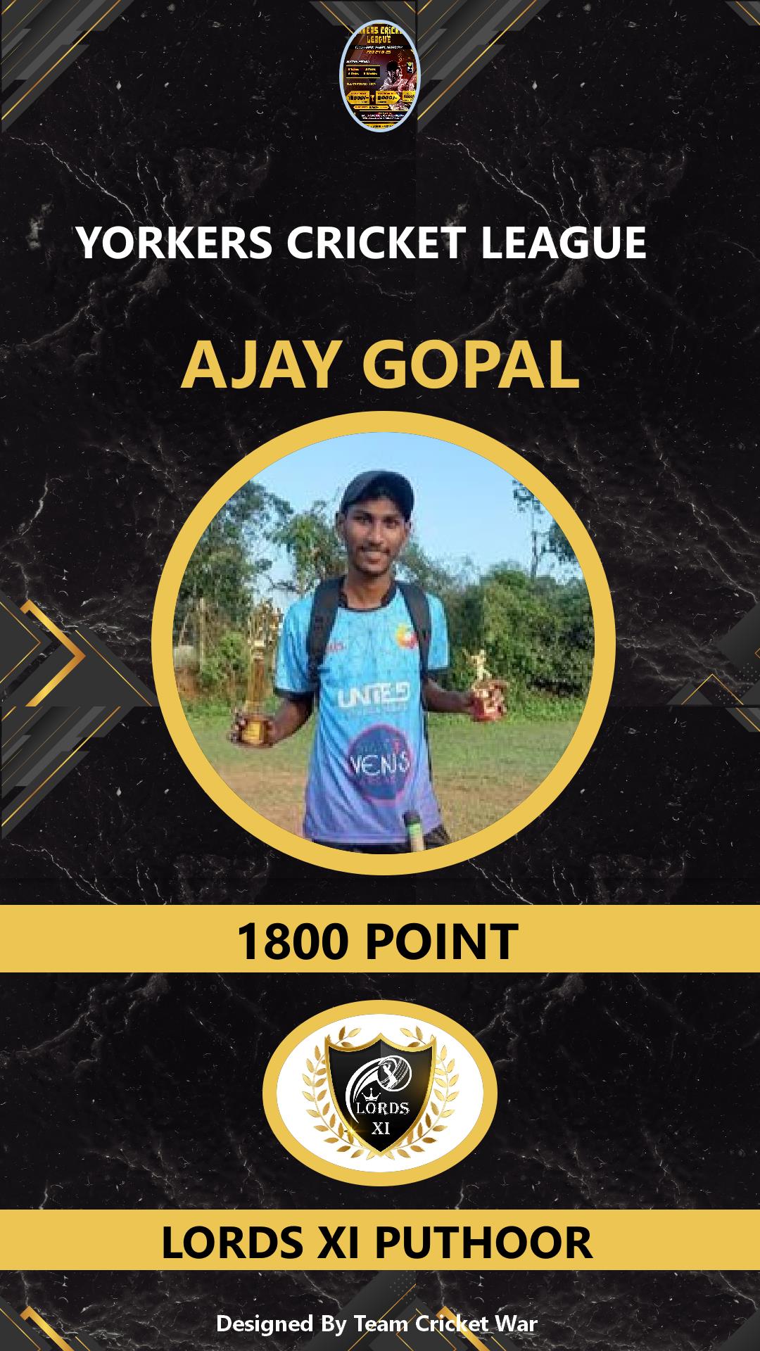 ALLROUNDER, AGE : 33 Bid Amount : 1000 Team : LORDS XI PUTHOOR Download ID Card VIEW PROFILE |
