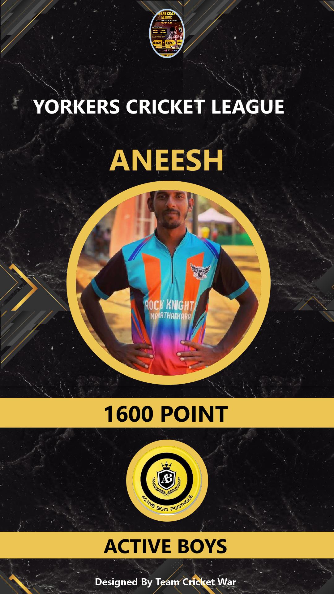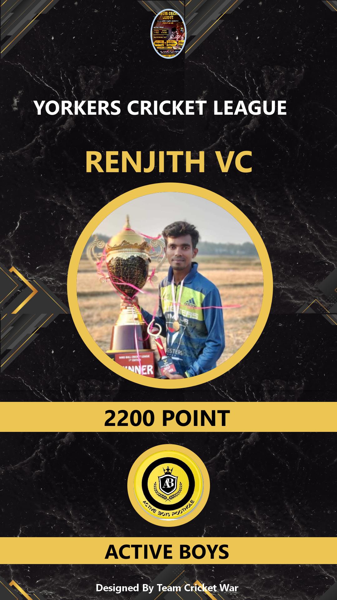 BOWLING ALLROUNDER, AGE : 31 KUNJANAMPARA Bid Amount : 1600 Team : ACTIVE BOYS Download ID Card VIEW PROFILE |