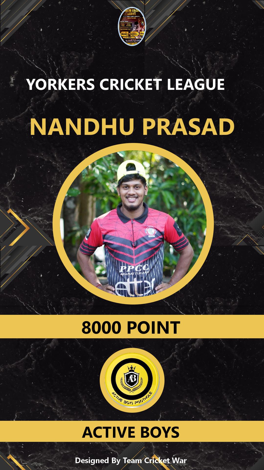 BATTING ALLROUNDER, AGE : 25 KOORKANCHERY Bid Amount : 8000 Team : ACTIVE BOYS Download ID Card VIEW PROFILE |