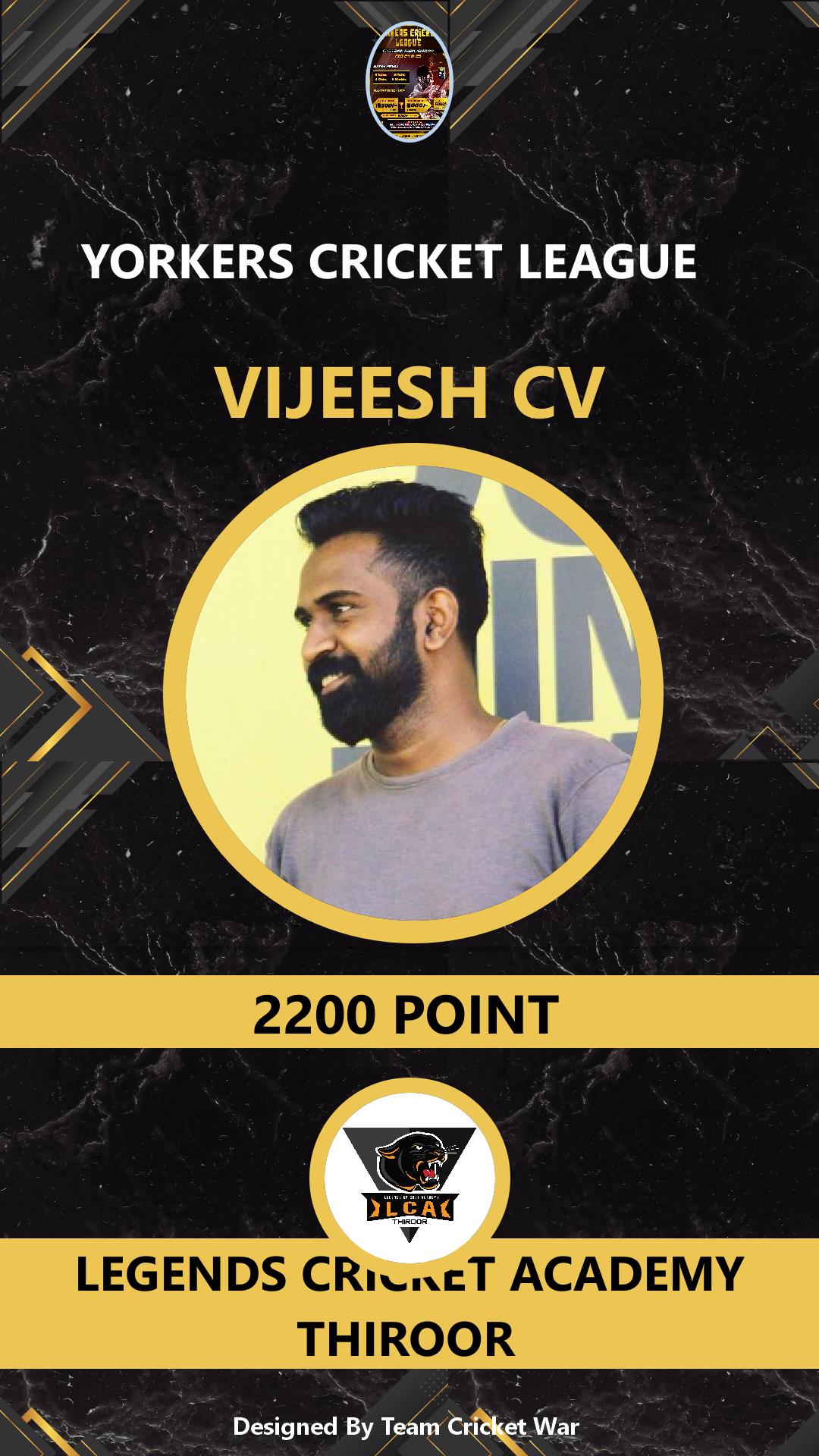 BATTING ALLROUNDER, AGE : 34 THIROOR Bid Amount : 2200 Team : LEGENDS CRICKET ACADEMY THIROOR Download ID Card VIEW PROFILE |