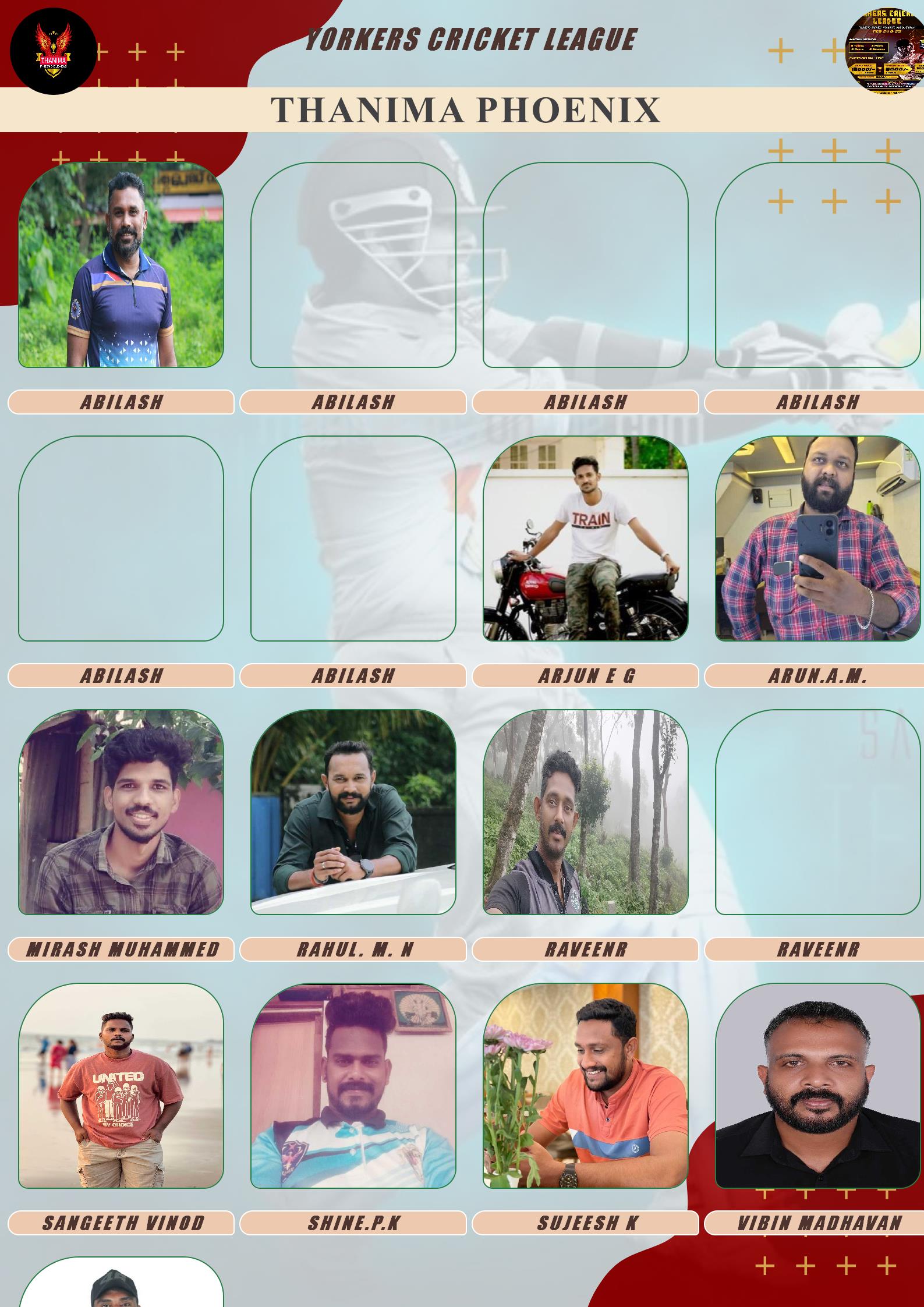 ALLROUNDER, AGE : 42 THRISSUR Bid Amount : 1800 Team : THANIMA PHOENIX Download ID Card VIEW PROFILE |