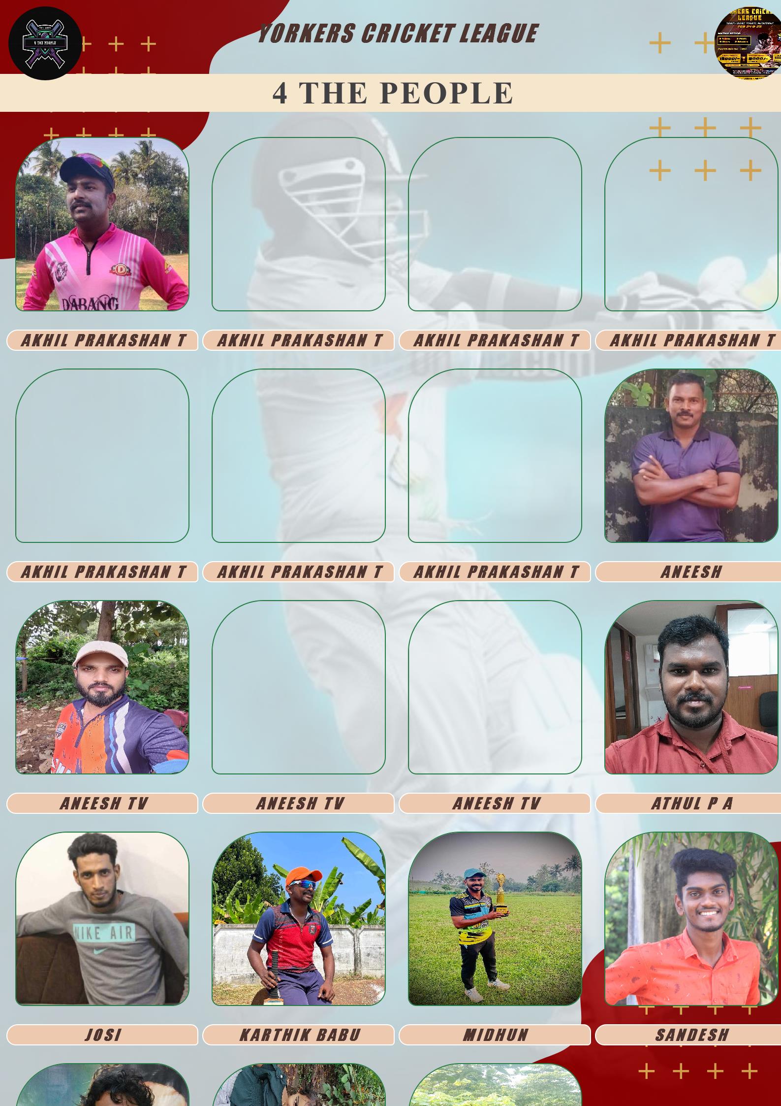 BOWLING ALLROUNDER, AGE : 38 PONGANAMKAD Bid Amount : 1000 Team : 4 THE PEOPLE Download ID Card VIEW PROFILE |