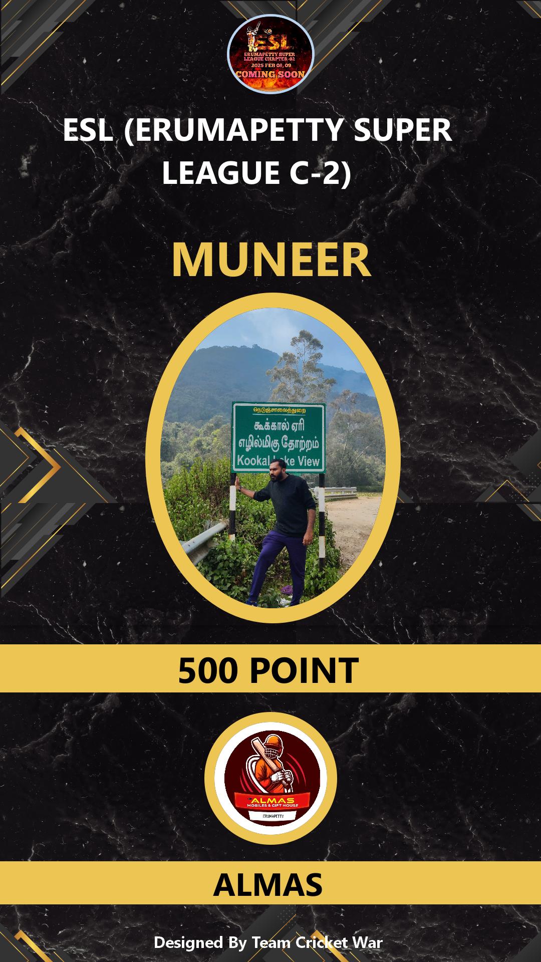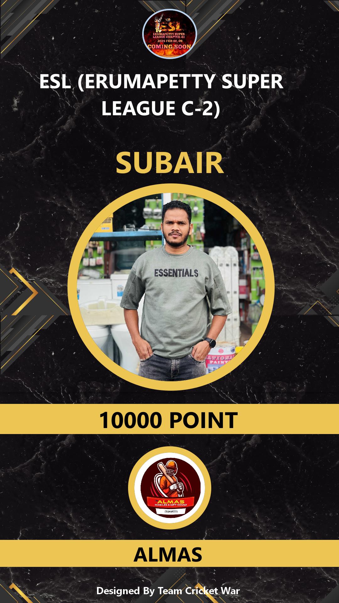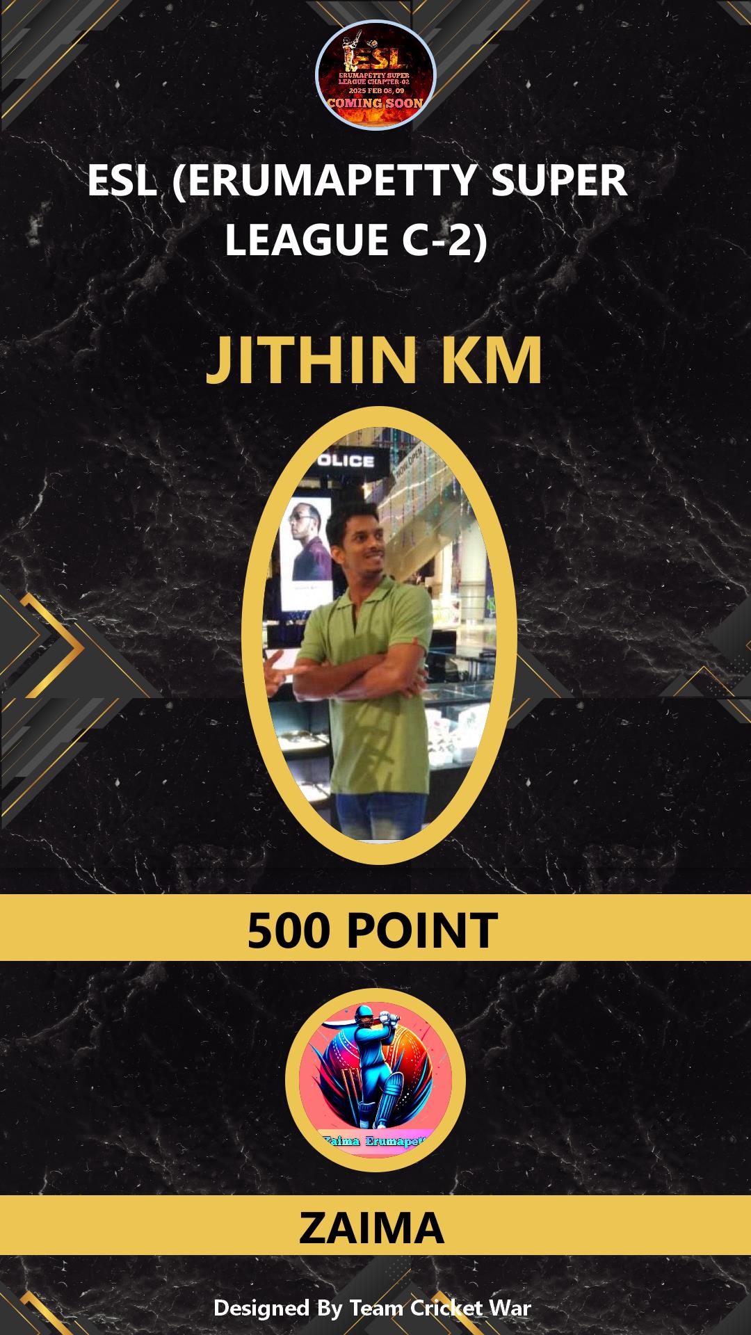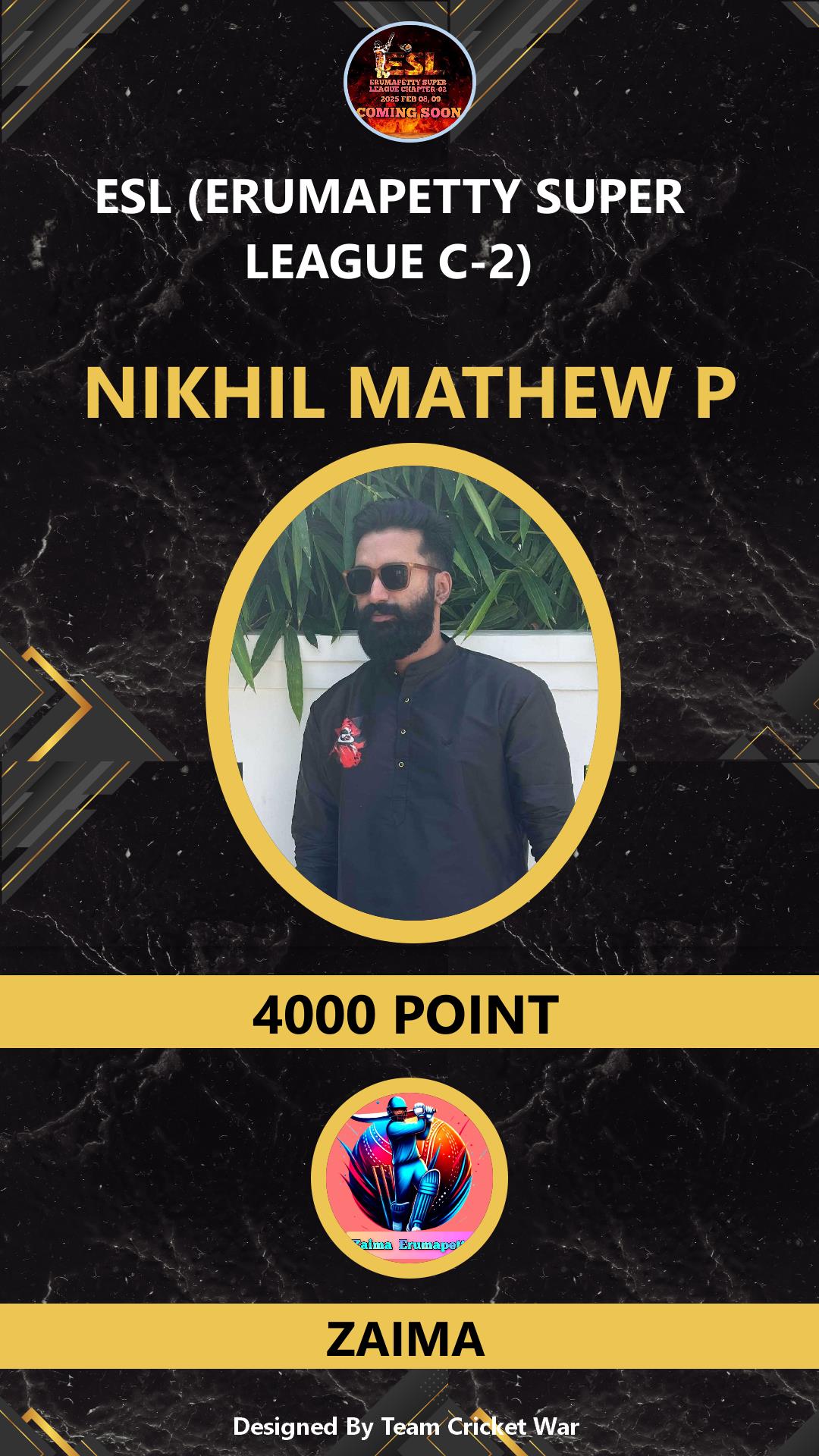 BATSMAN, AGE : 30 ERUMAPETTY Bid Amount : 4000 Team : ZAIMA Download ID Card VIEW PROFILE |