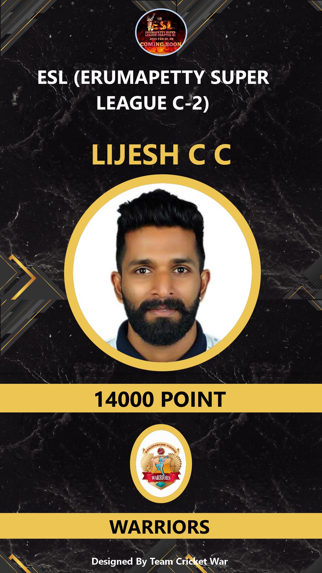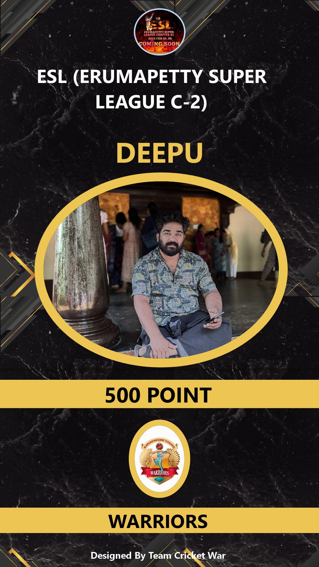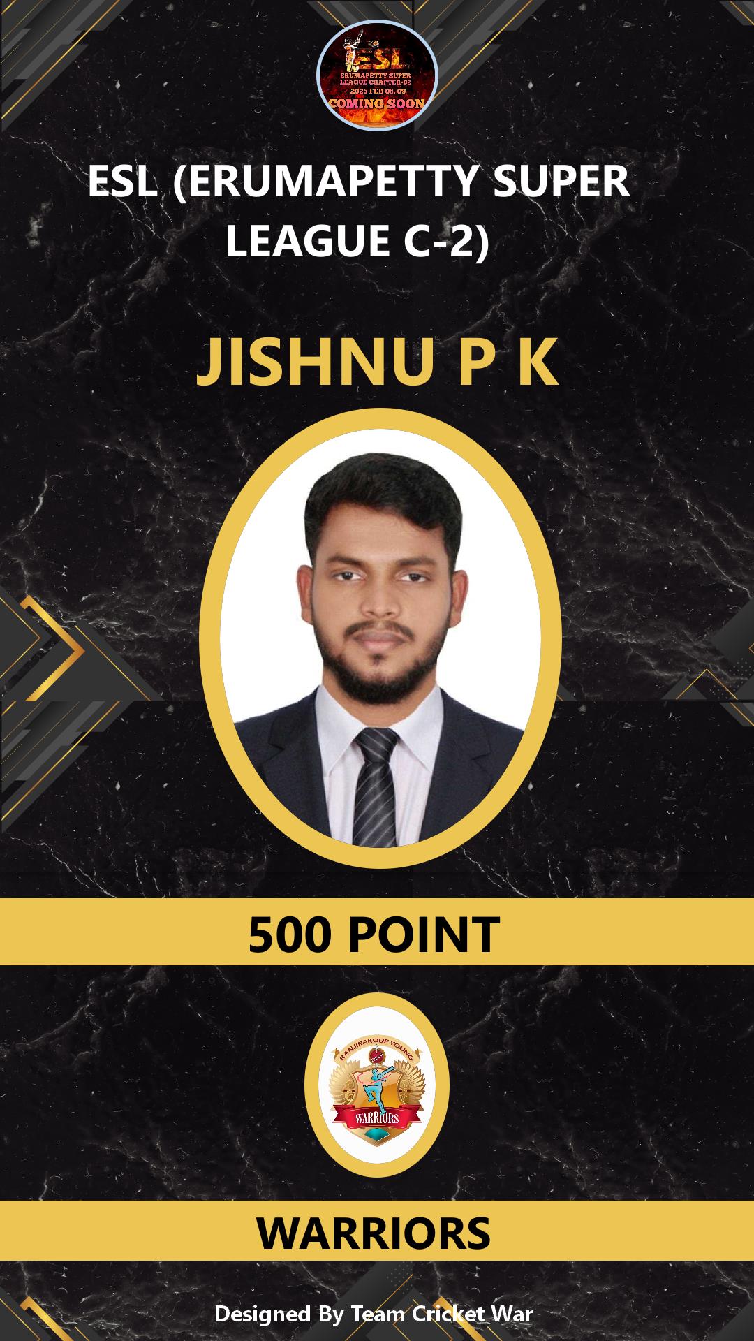 ALLROUNDER, AGE : 37 ERUMAPETTY Bid Amount : 4000 Team : WARRIORS Download ID Card VIEW PROFILE |