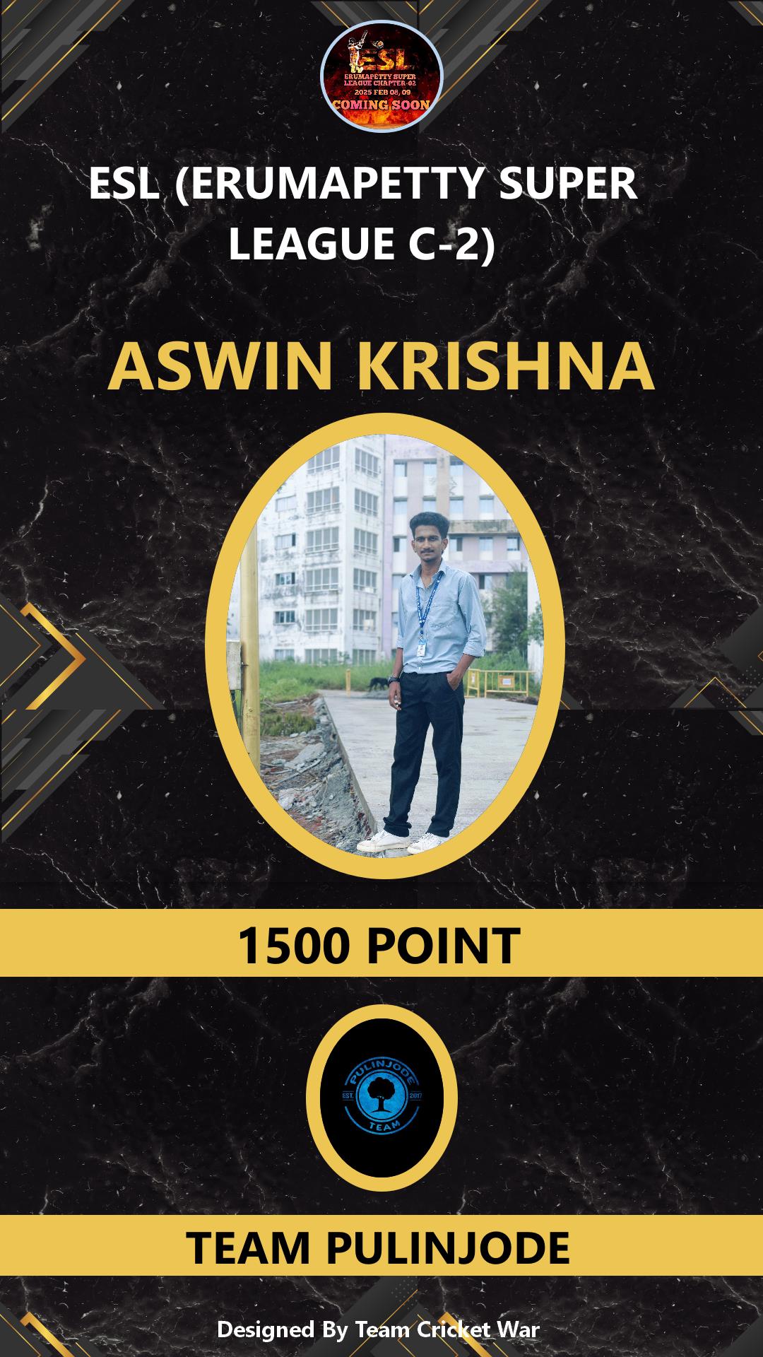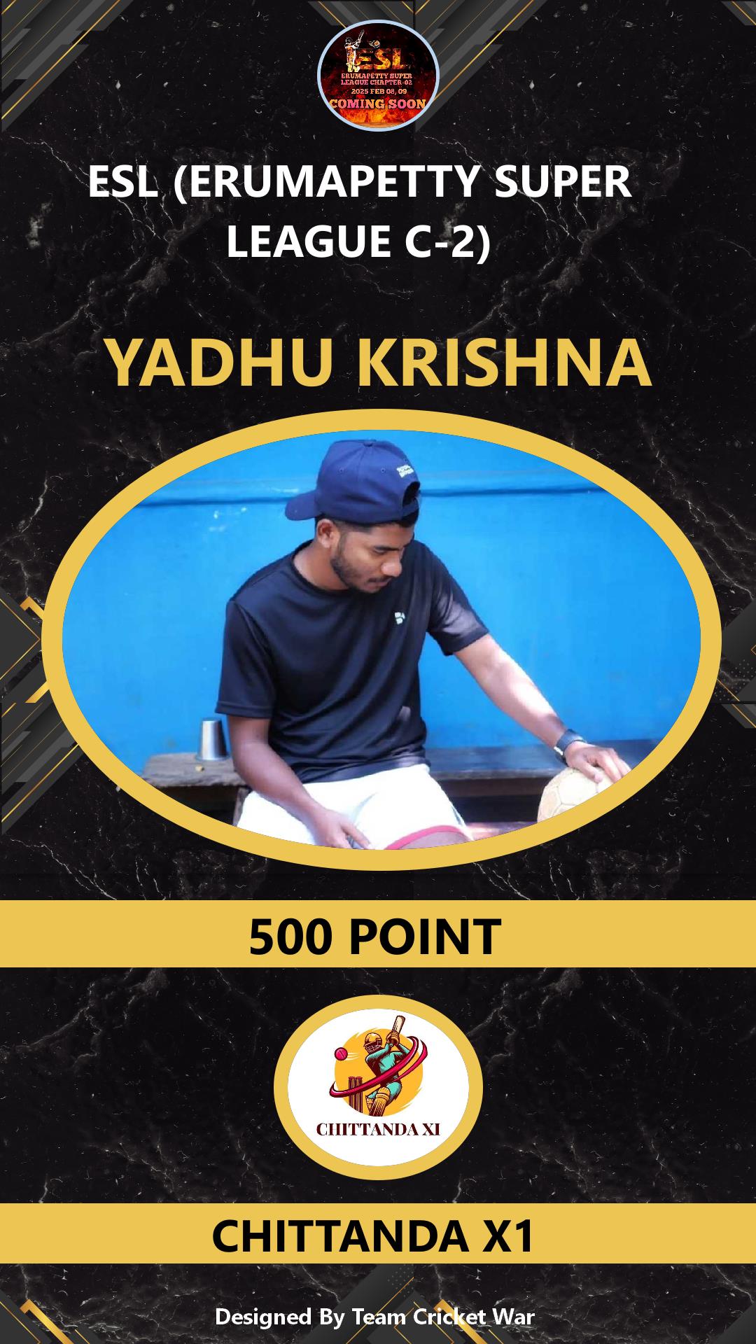 BATTING ALLROUNDER, AGE : 34 PATHIYARAM VIEW PROFILE |