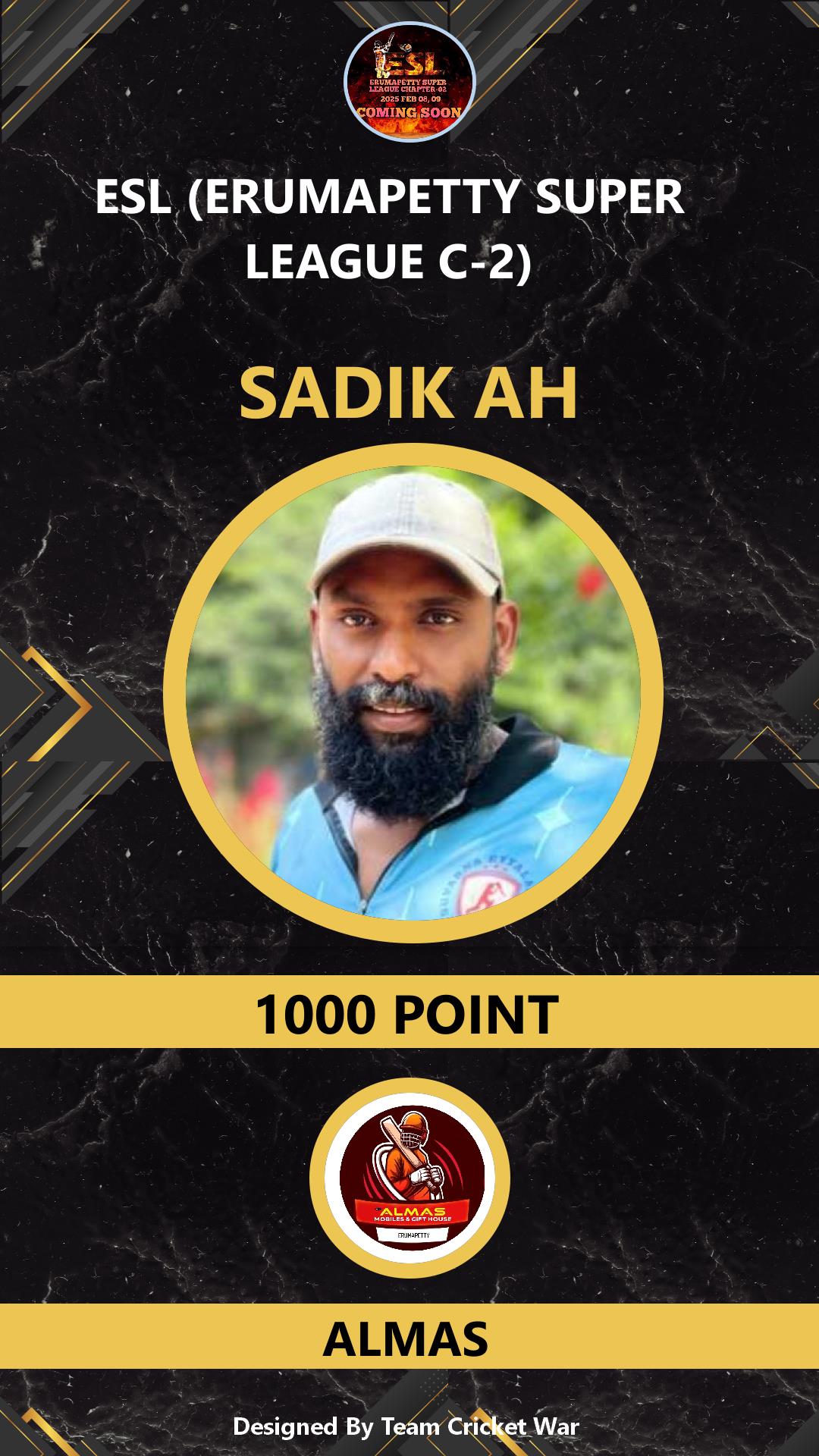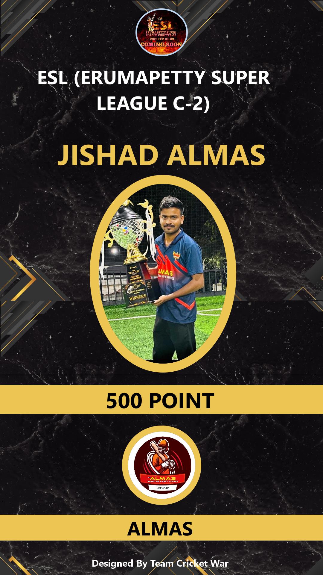 BATSMAN, AGE : 37 KADANGODE Bid Amount : 500 Team : ALMAS Download ID Card VIEW PROFILE |