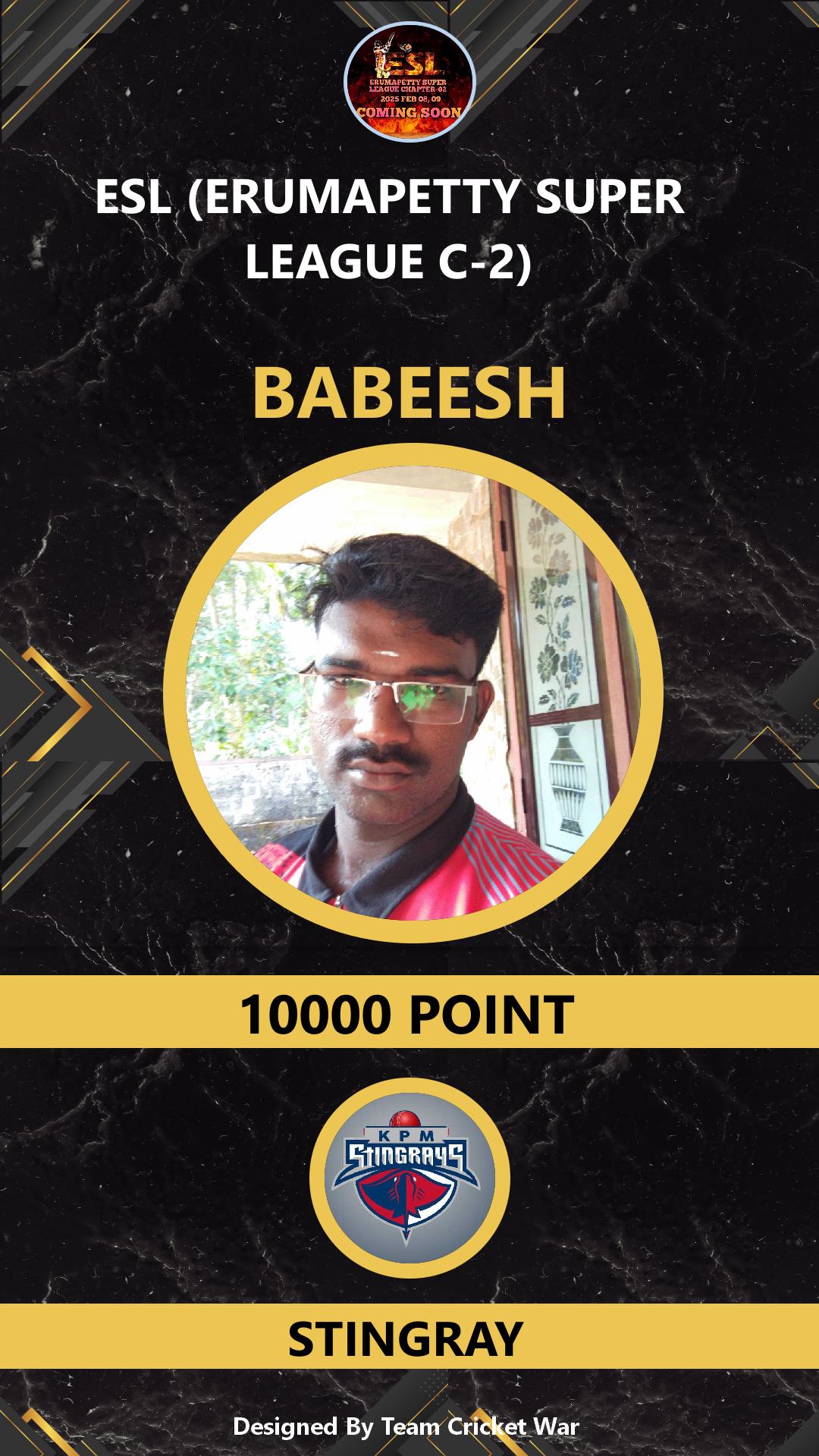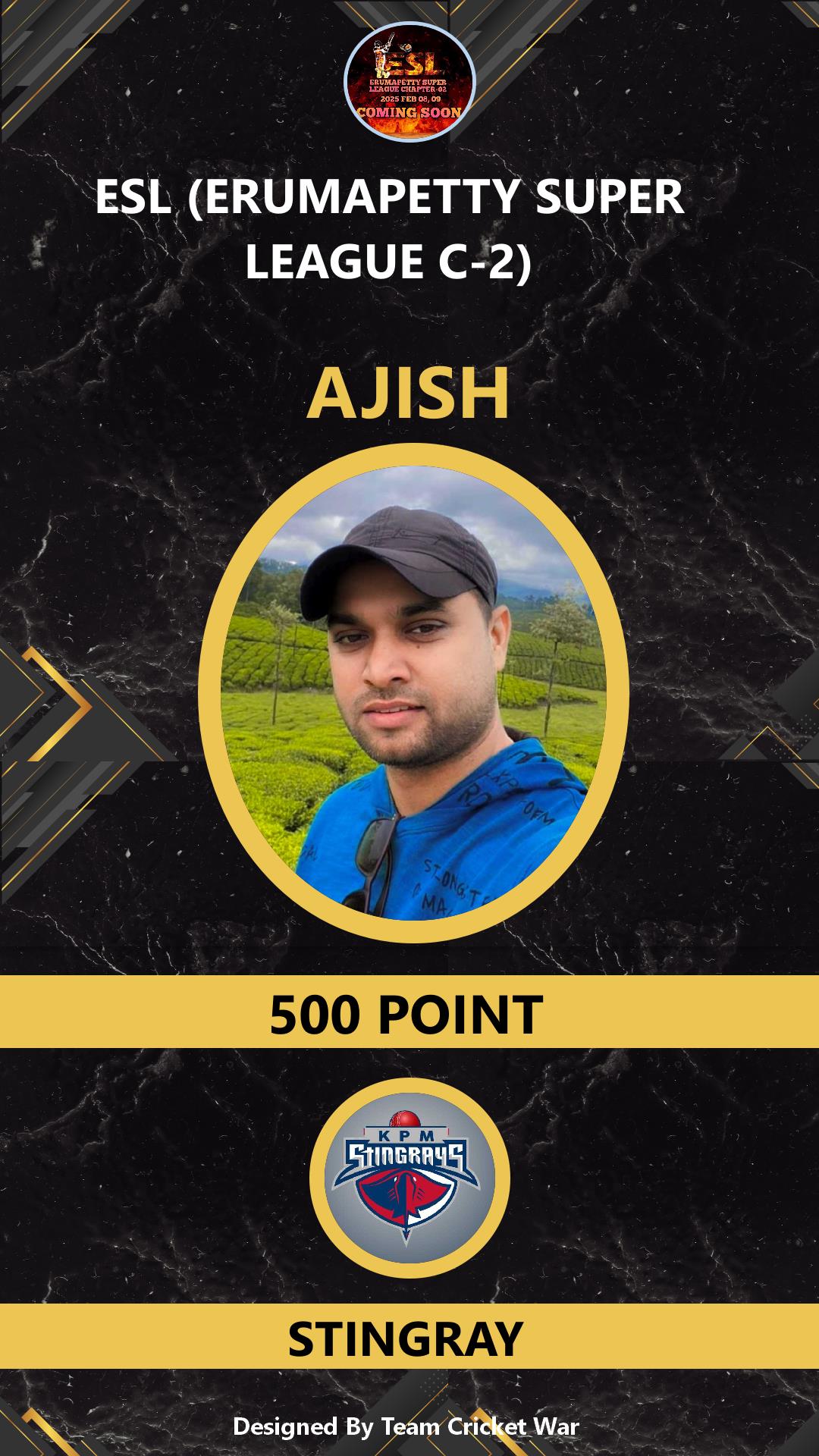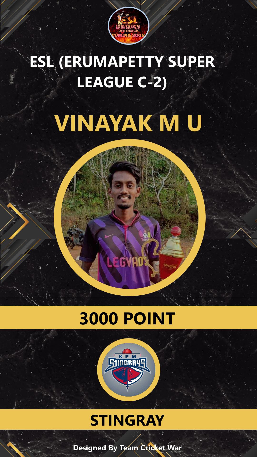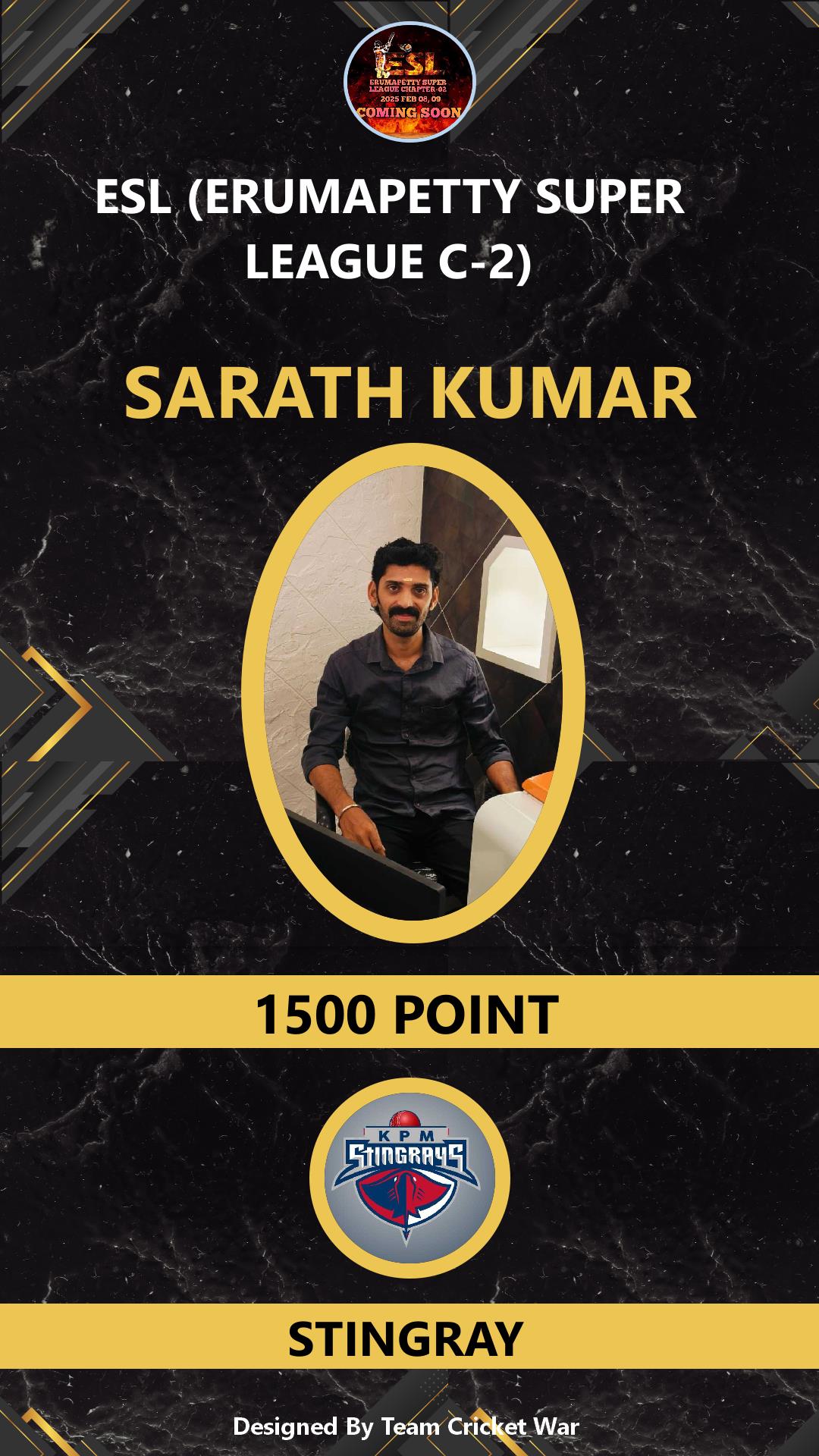 BATSMAN, AGE : 30 NELLUVAI Bid Amount : 500 Team : STINGRAY Download ID Card VIEW PROFILE |