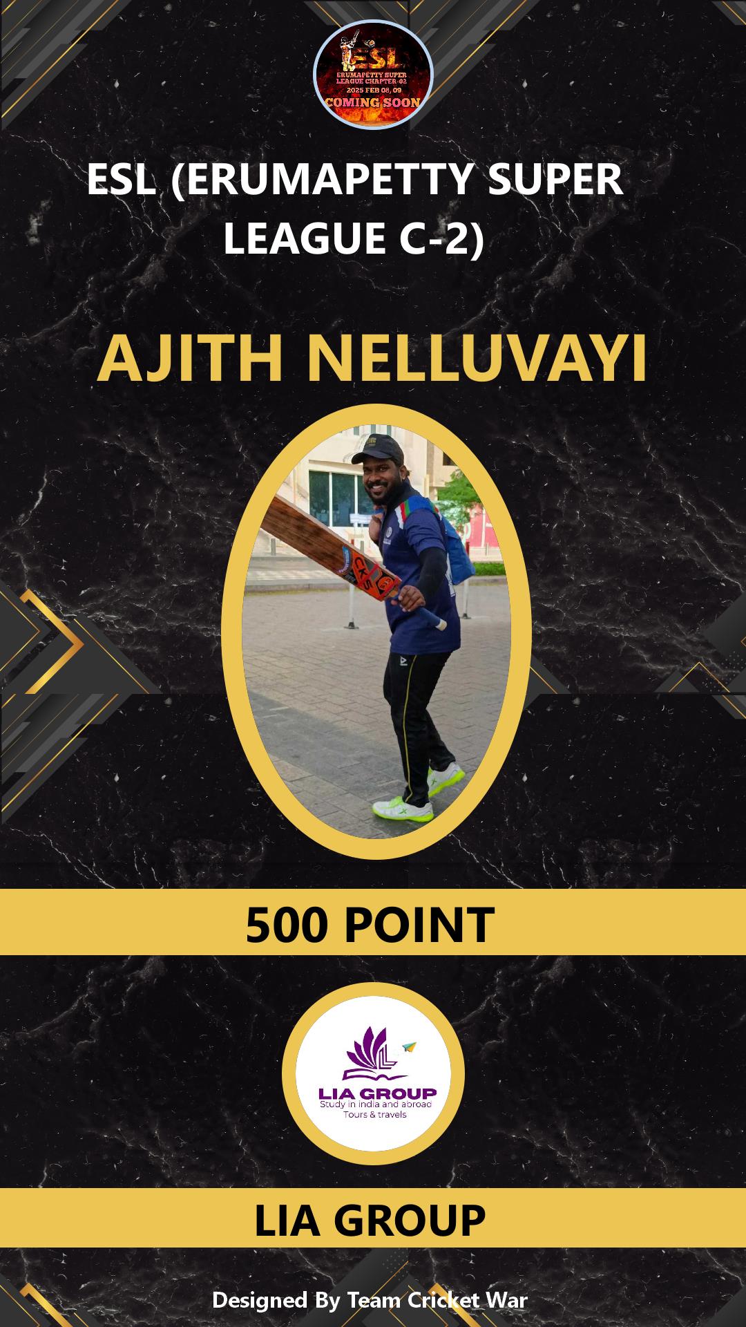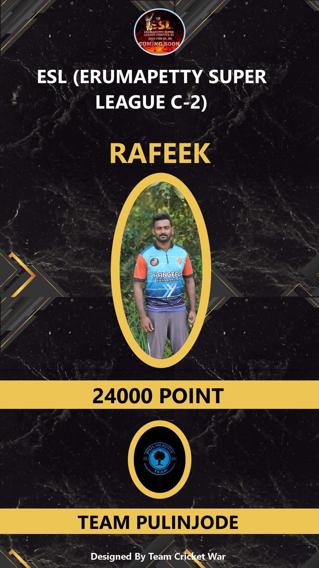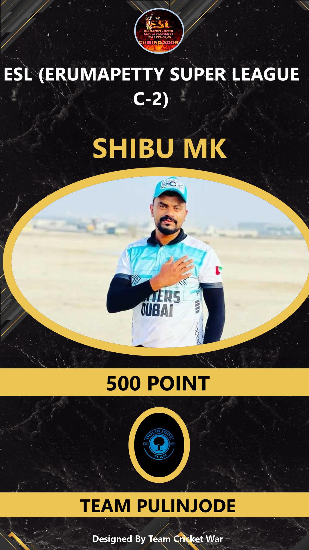 BATSMAN, AGE : 31 ERUMAPPETTY Bid Amount : 500 Team : TEAM PULINJODE Download ID Card VIEW PROFILE |