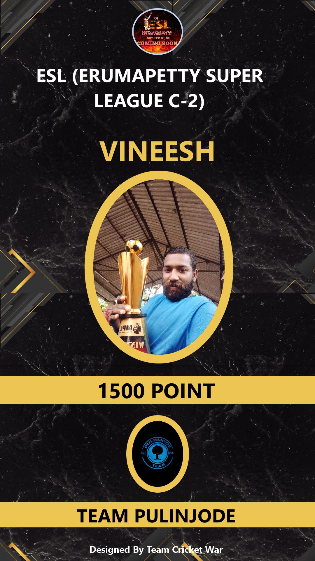 BOWLING ALLROUNDER, AGE : 31 VELUR Bid Amount : 500 Team : TEAM PULINJODE Download ID Card VIEW PROFILE |