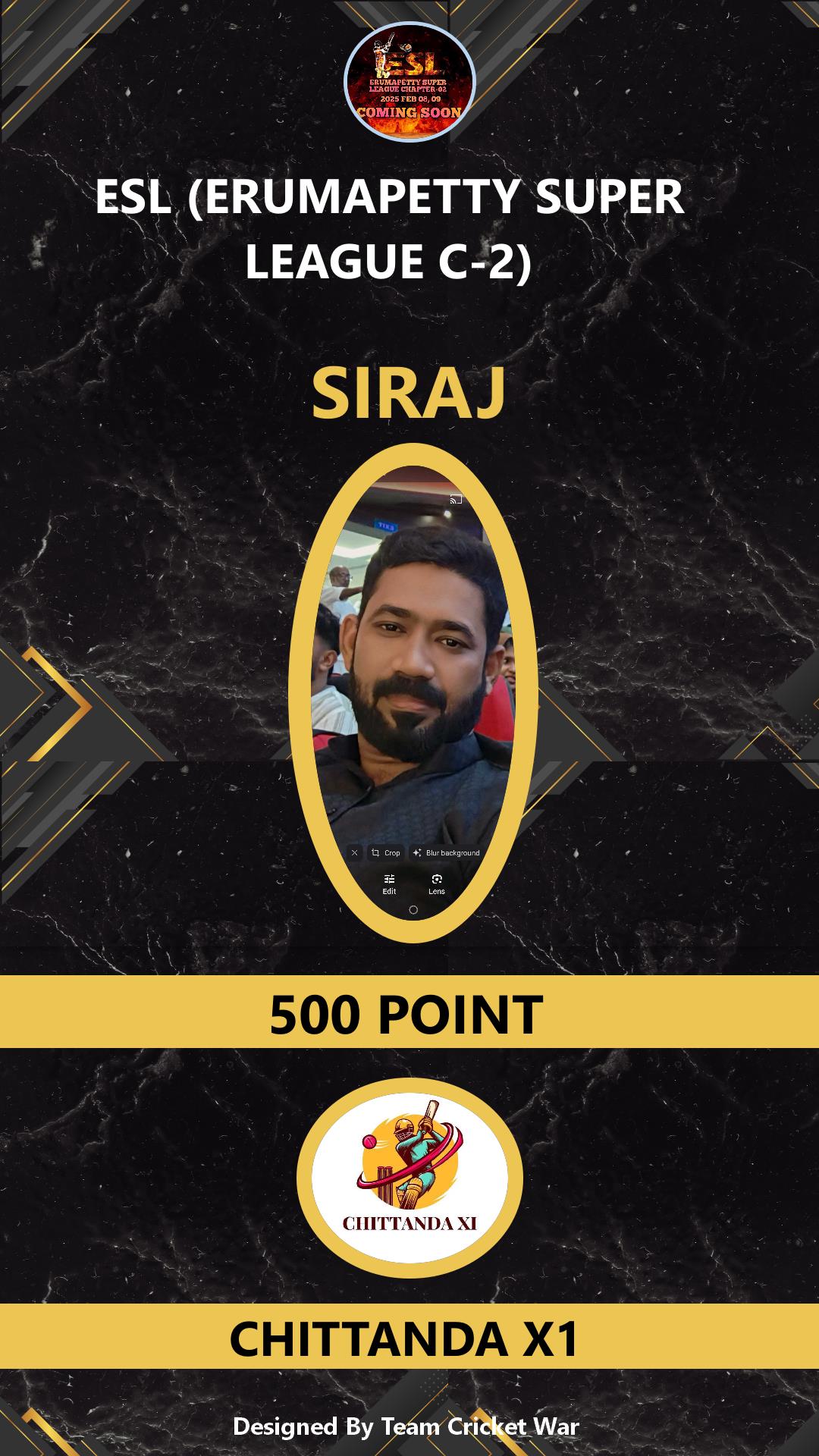 BOWLER, AGE : 28 NELLUVAI Bid Amount : 500 Team : CHITTANDA X1 Download ID Card VIEW PROFILE |