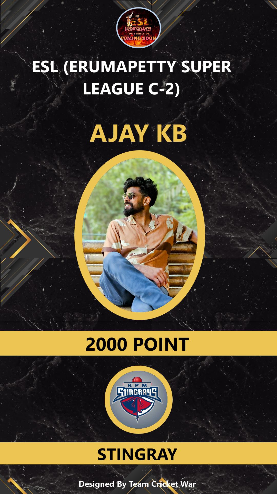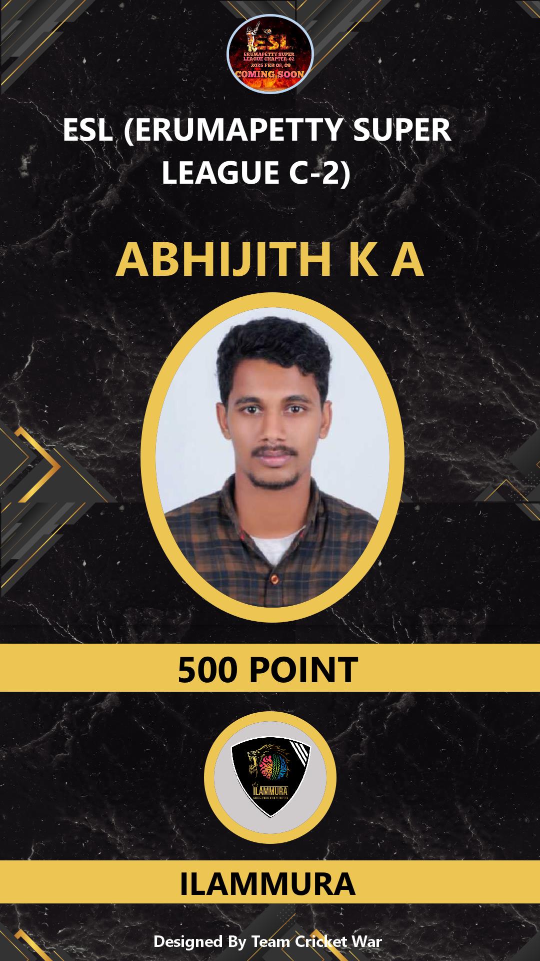 BATTING ALLROUNDER, AGE : 31 MANGAD VIEW PROFILE |