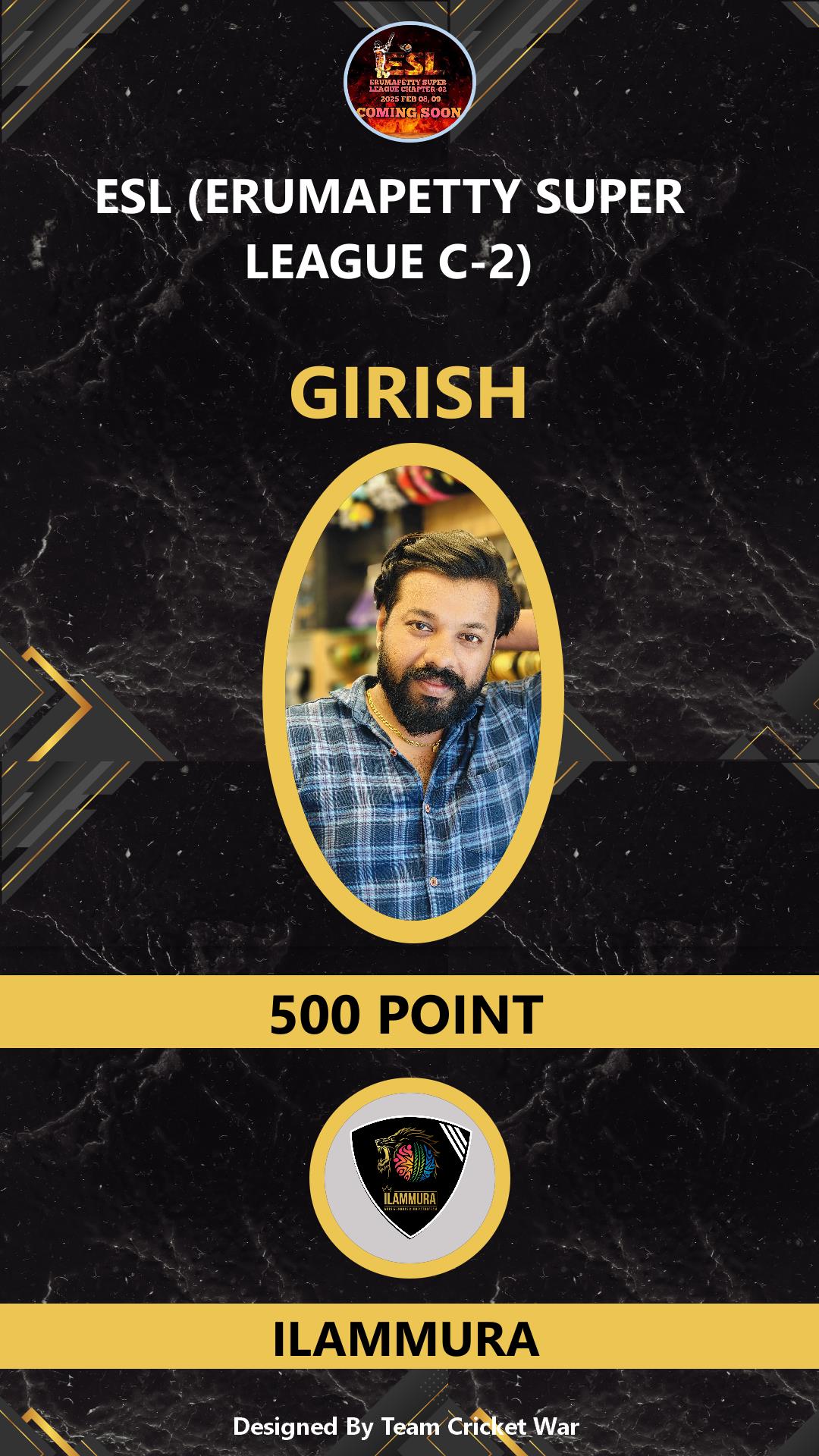 ALLROUNDER, AGE : 38 MANGAD Bid Amount : 500 Team : ILAMMURA Download ID Card VIEW PROFILE |