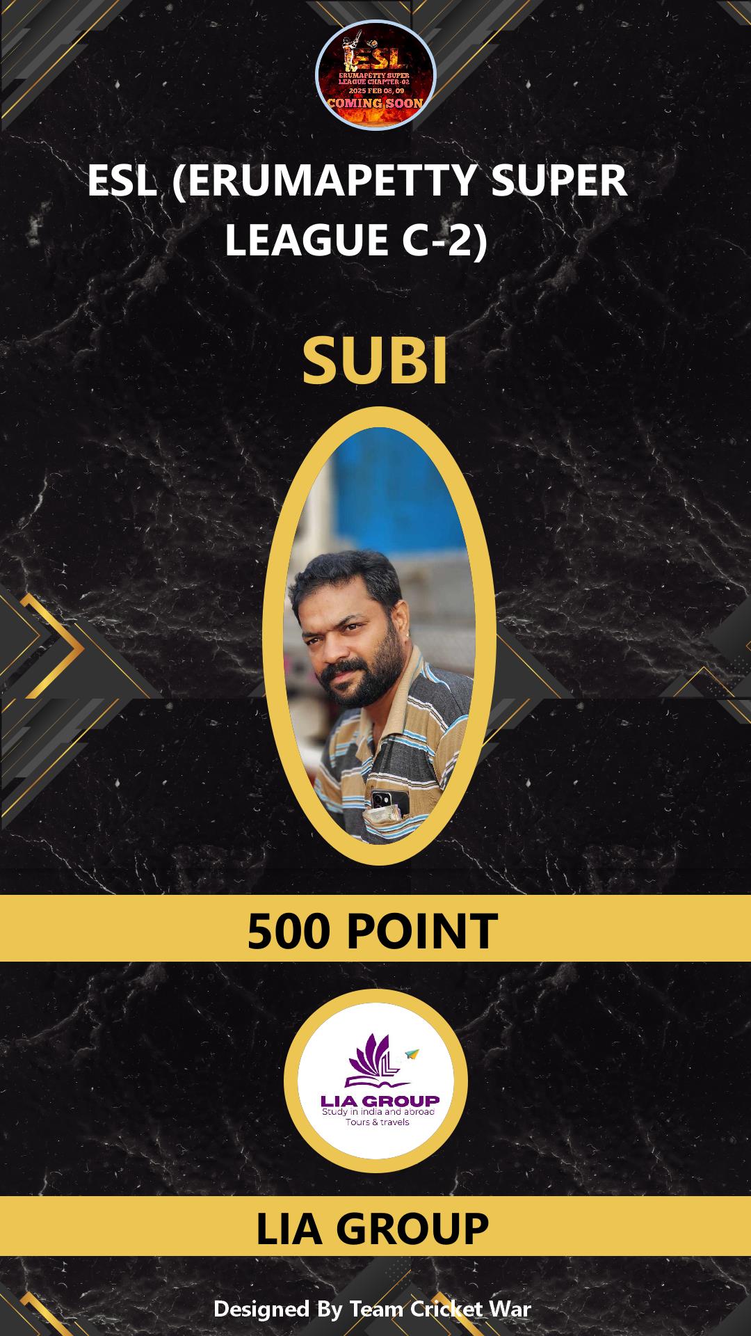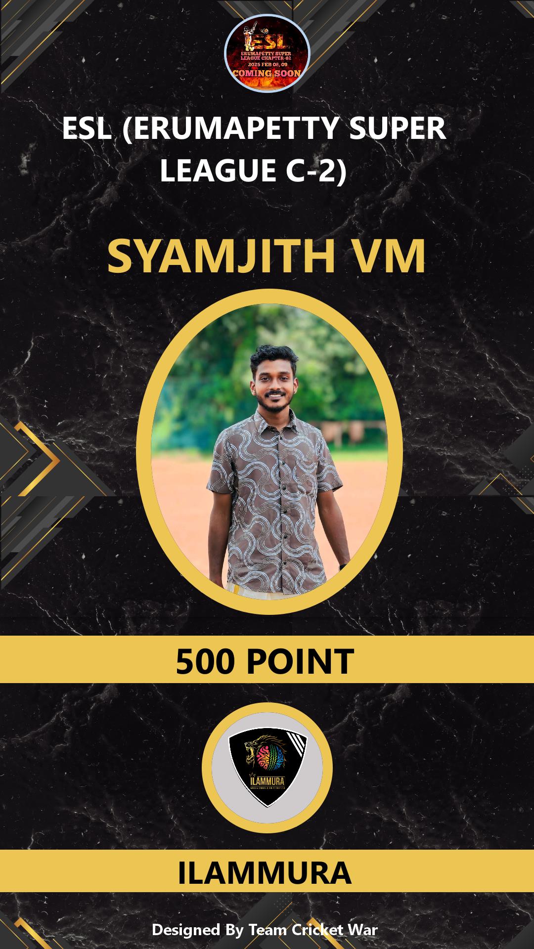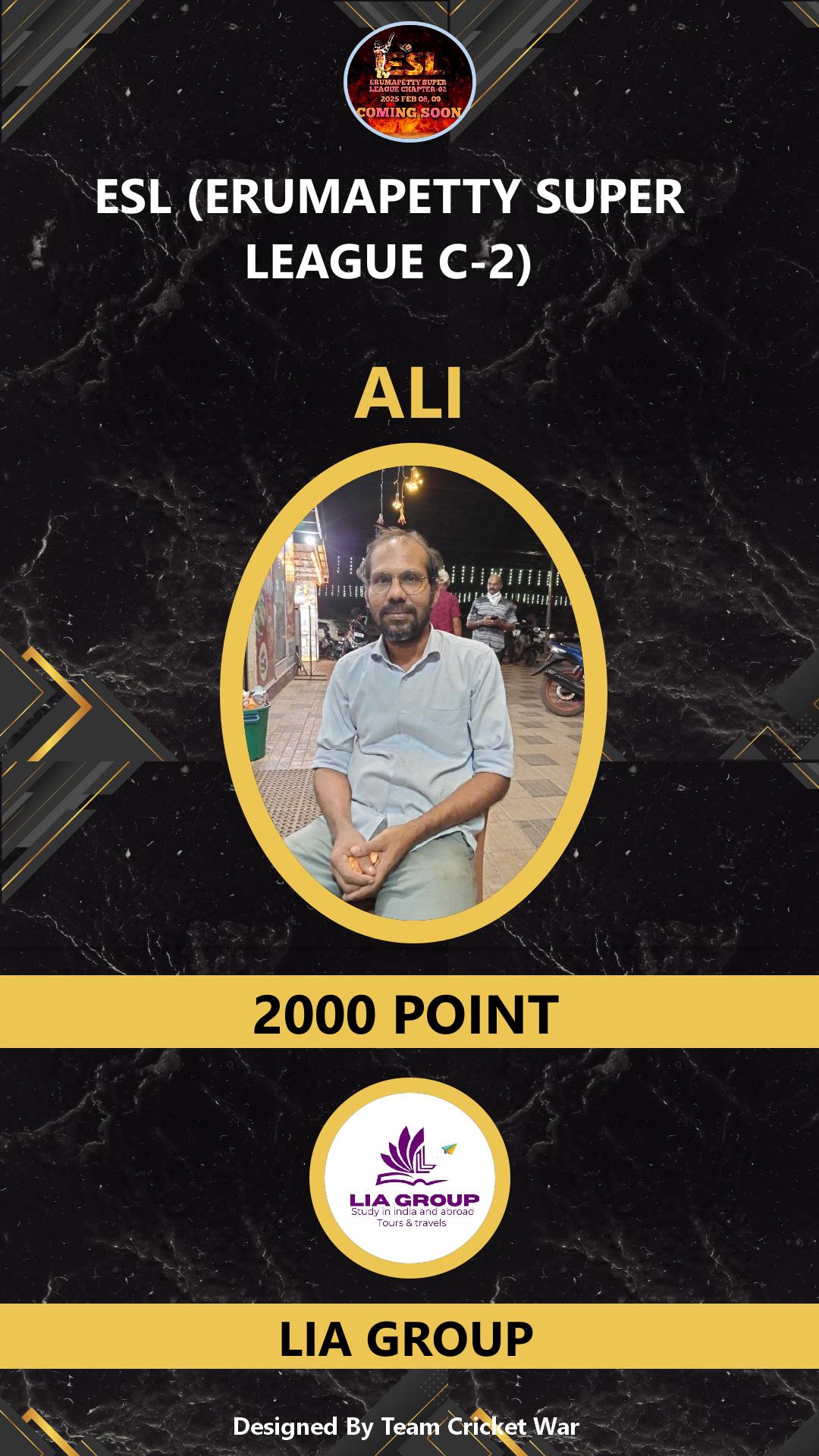ALLROUNDER, AGE : 44 ERUMAPETTY Bid Amount : 500 Team : LIA GROUP Download ID Card VIEW PROFILE |