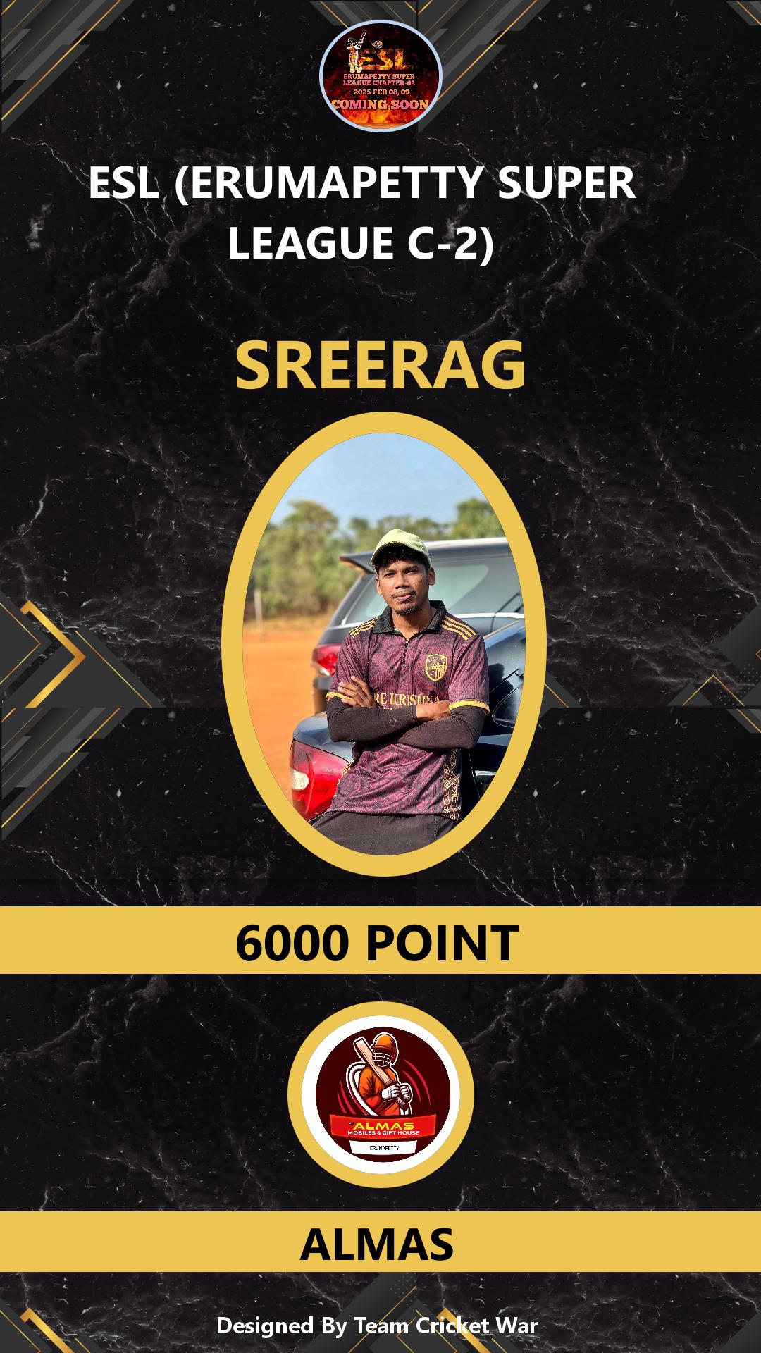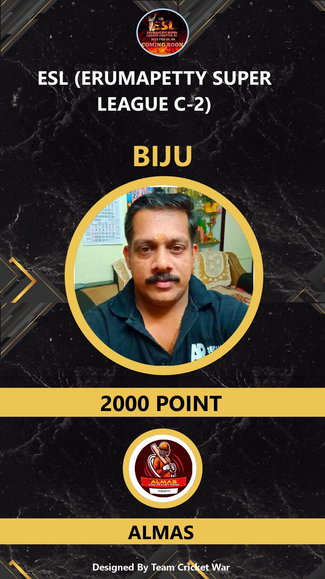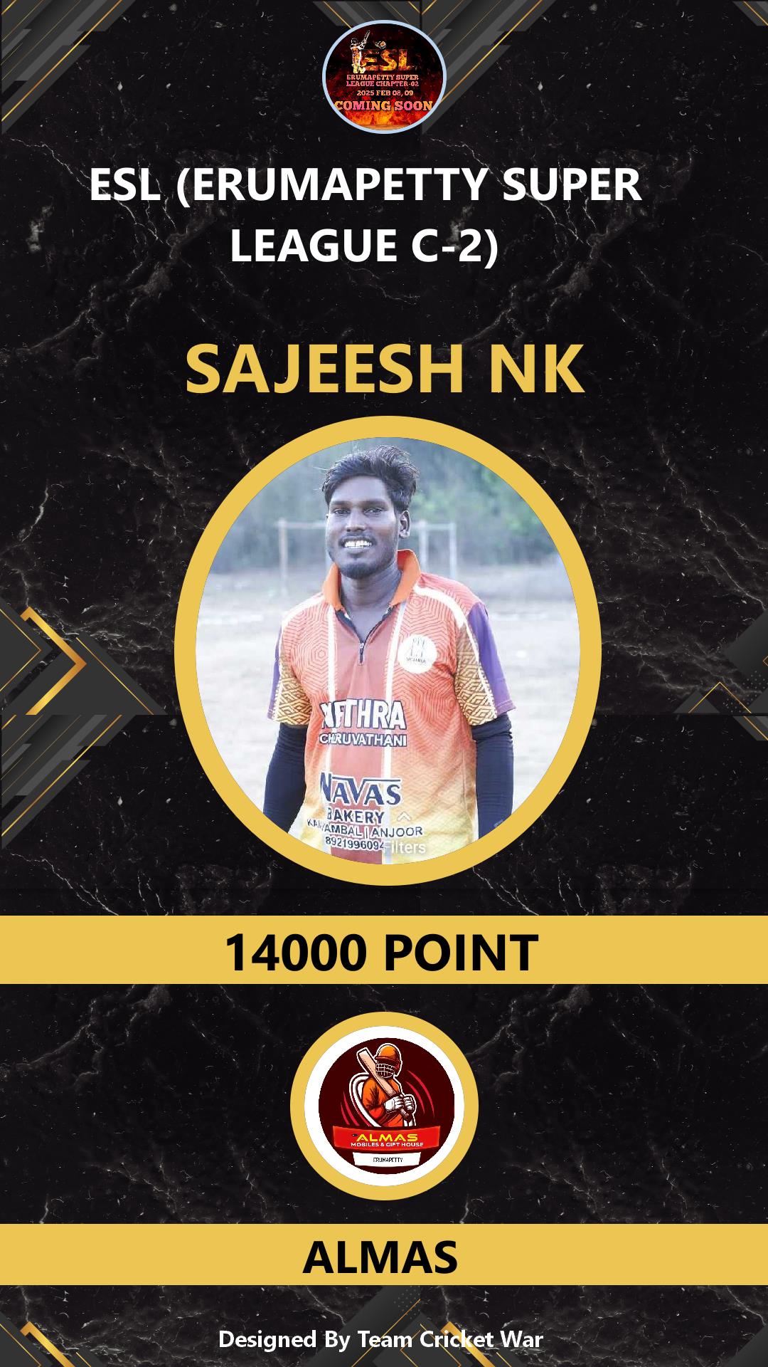 BATSMAN, AGE : 34 VELLARAKKAD Bid Amount : 5000 Team : ALMAS Download ID Card VIEW PROFILE |