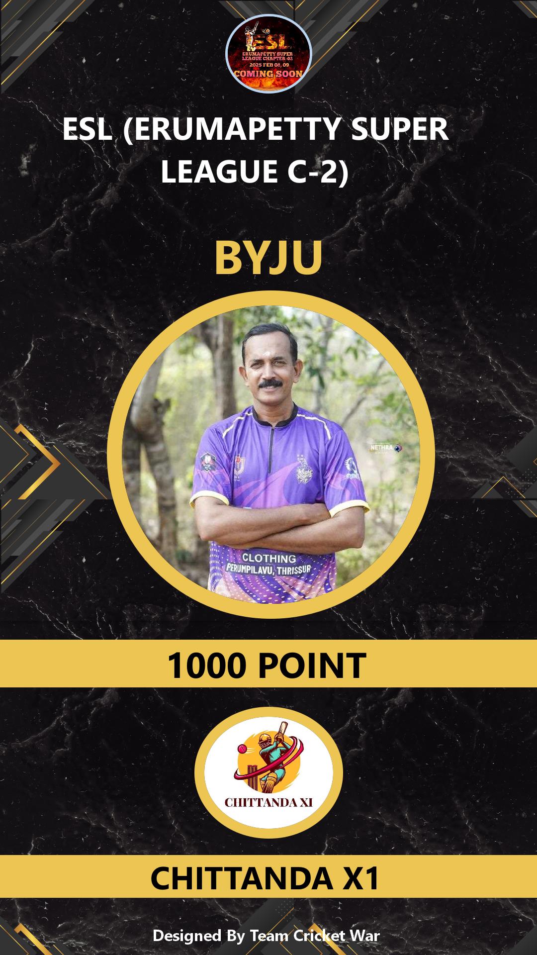 ALLROUNDER, AGE : 41 ERUMAPETTY Bid Amount : 500 Team : CHITTANDA X1 Download ID Card VIEW PROFILE |