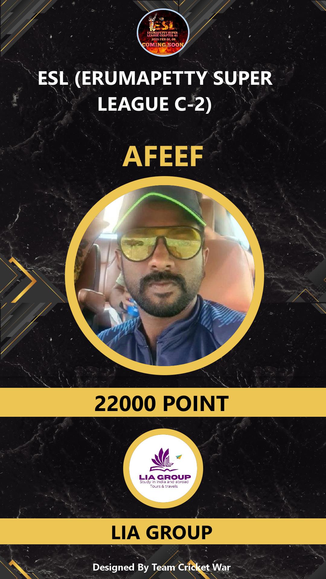 ALLROUNDER, AGE : 46 ERUMAPETTY Bid Amount : 500 Team : LIA GROUP Download ID Card VIEW PROFILE |