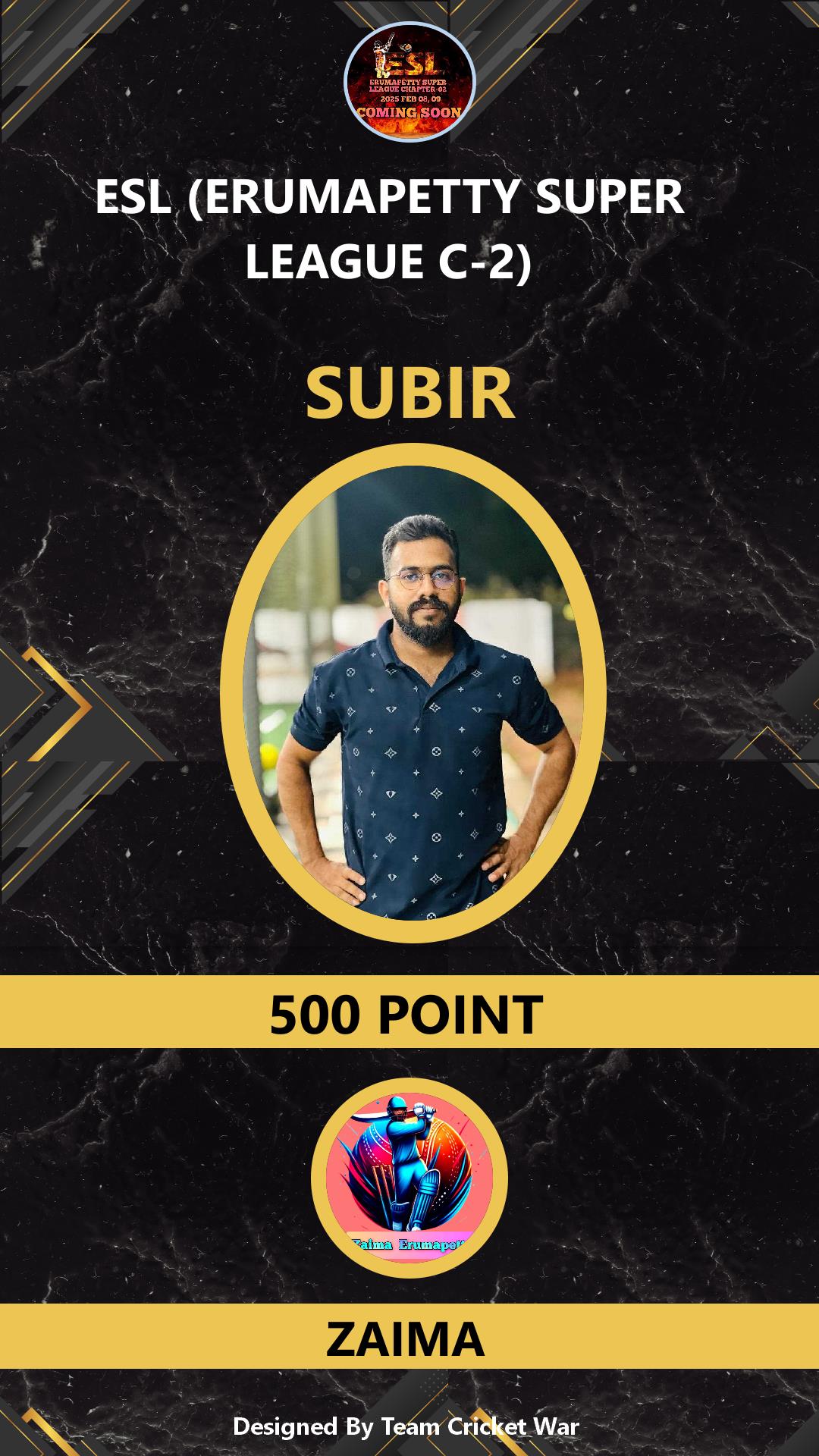 ALLROUNDER, AGE : 38 ERUMAPETTY Bid Amount : 500 Team : ZAIMA Download ID Card VIEW PROFILE |