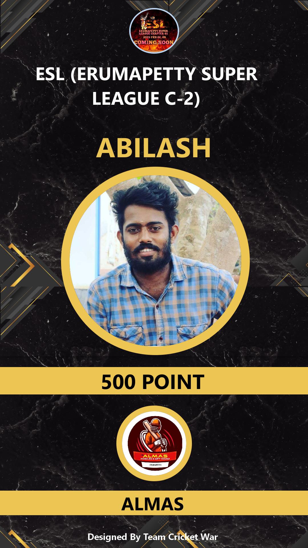 ALLROUNDER, AGE : 33 EYYALAKKAD Bid Amount : 500 Team : ALMAS Download ID Card |